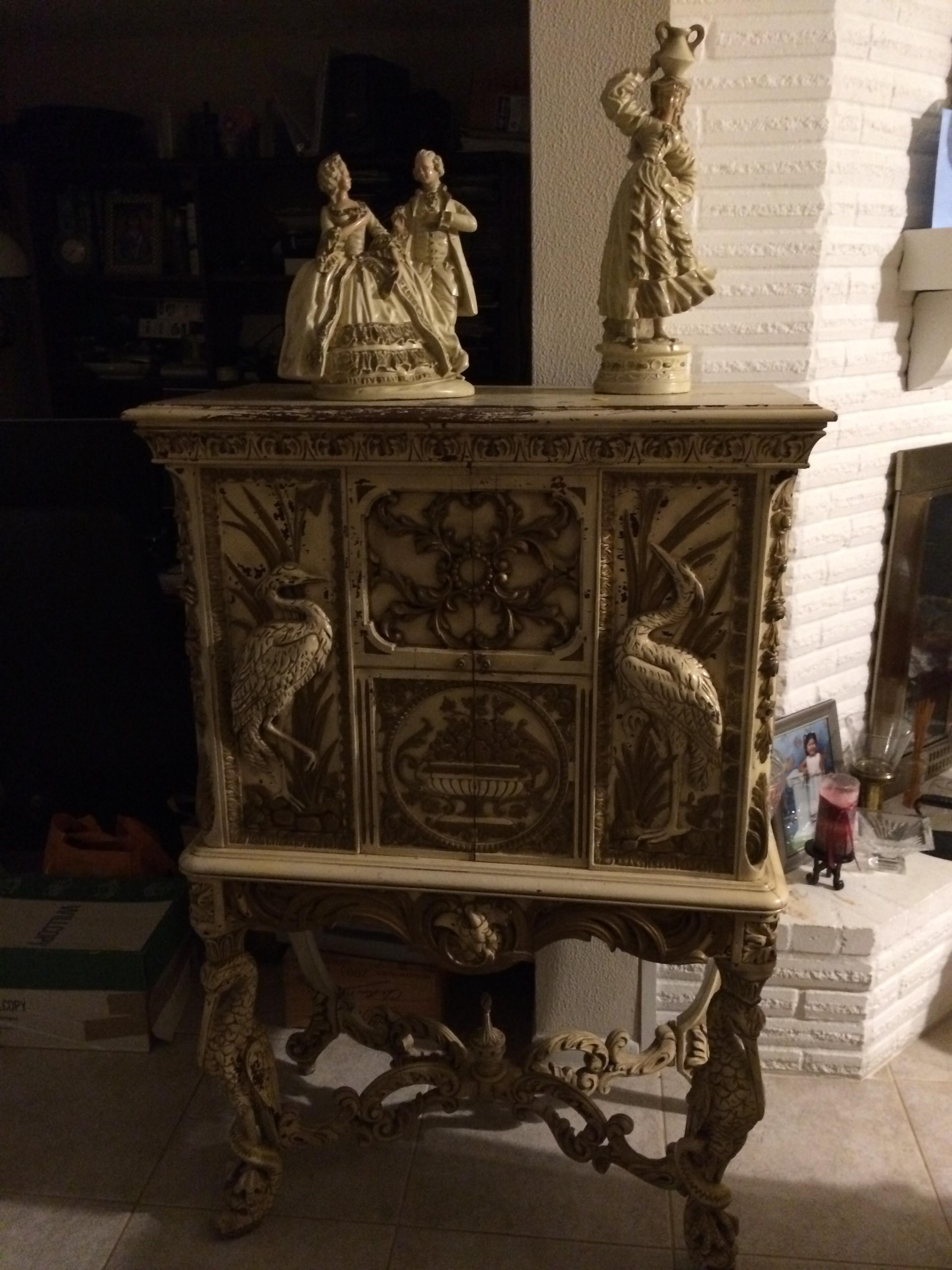 I have this old carved egret furniture. I believe it used to be a Musical box before.Unfortunately, I don't know any history or origin of this great table. I am interested in an appraisal and any information on this piece. All I know is that it came out of New York about 70 years ago. Have anyone seeing one like that. I have done a lot of research and I can not find nothing alike.