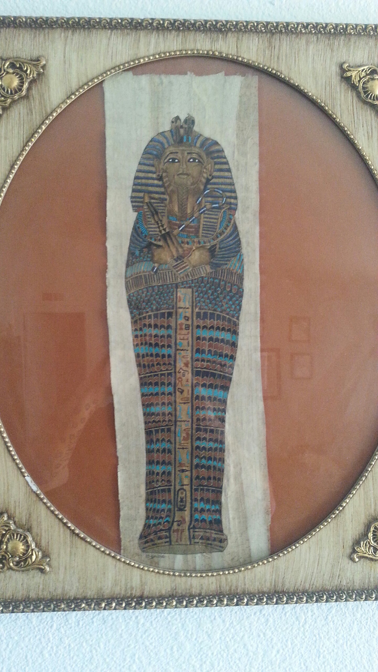 This portrait was given to my husband by his grandmother. It is done on papyrus paper. It is signed but we can't read the writing.