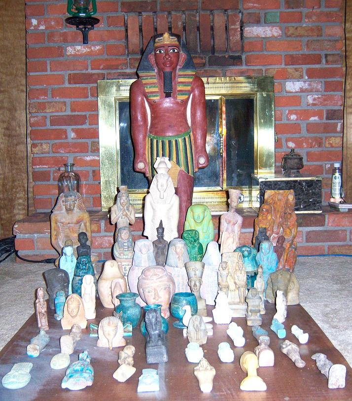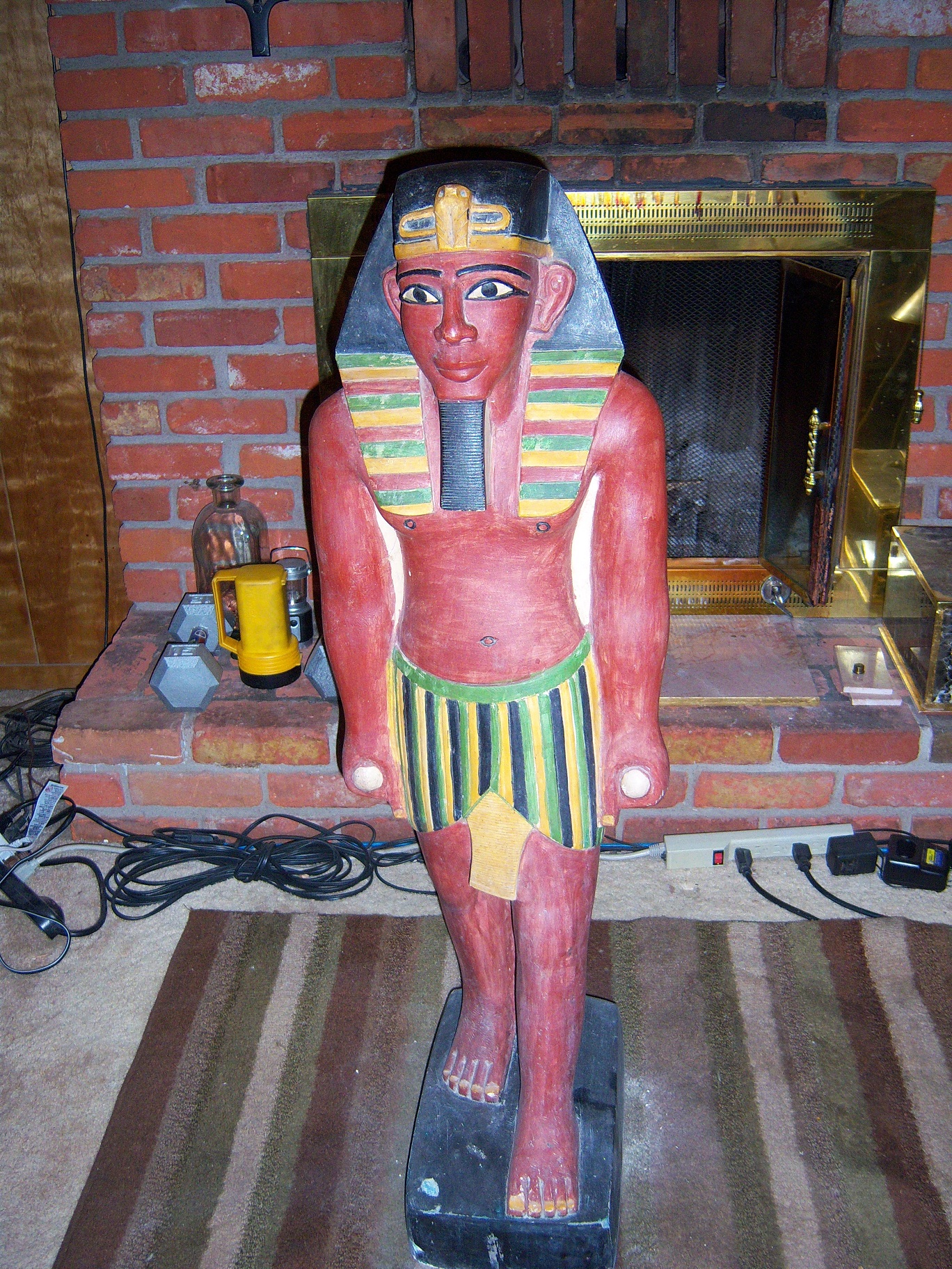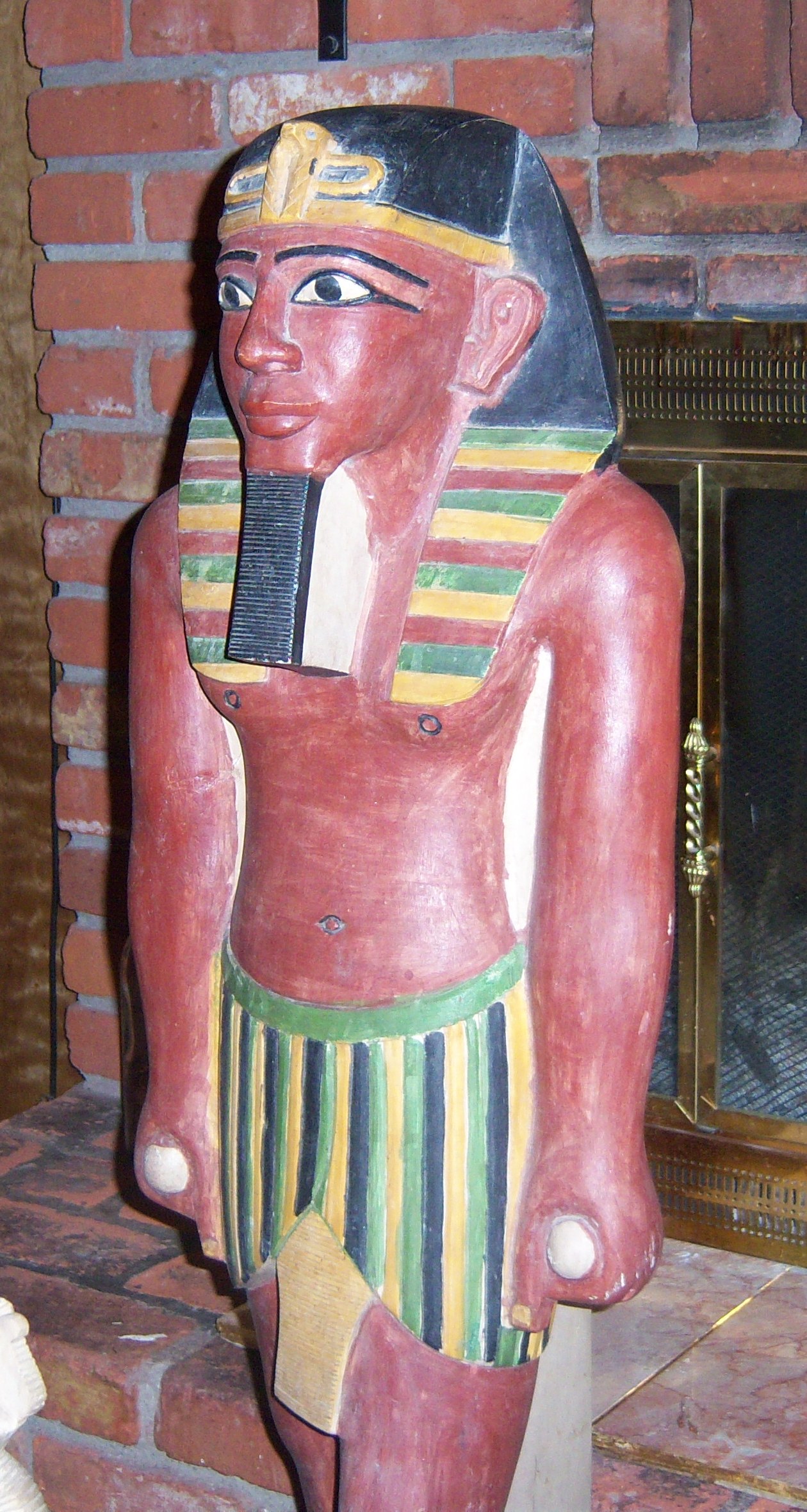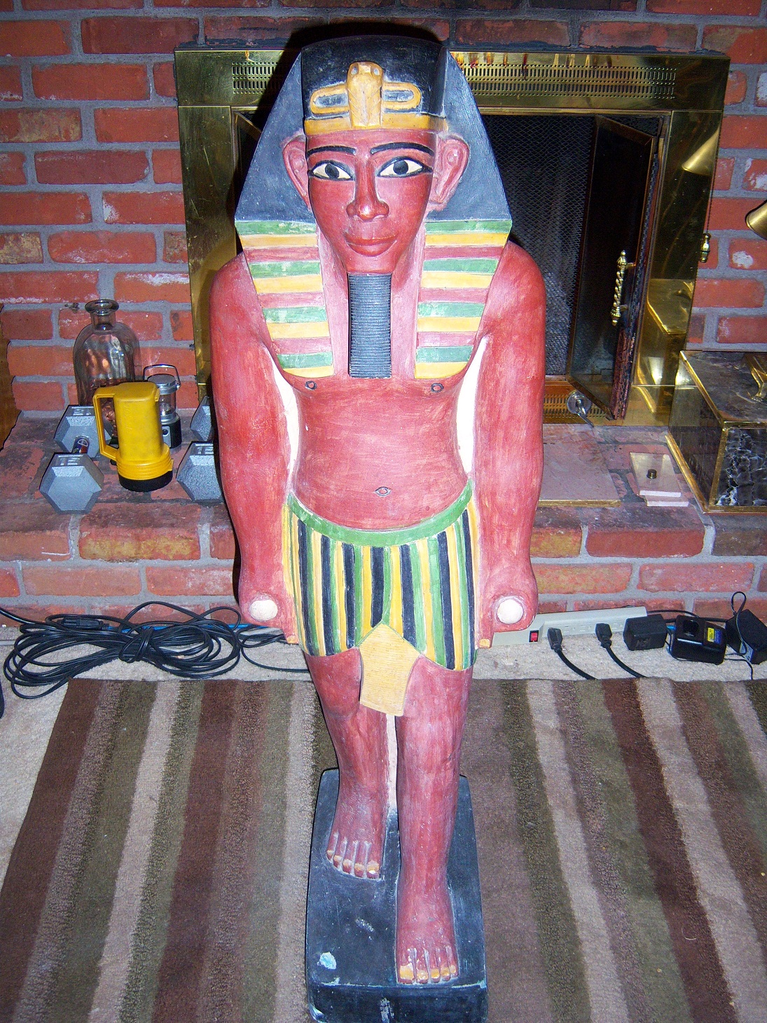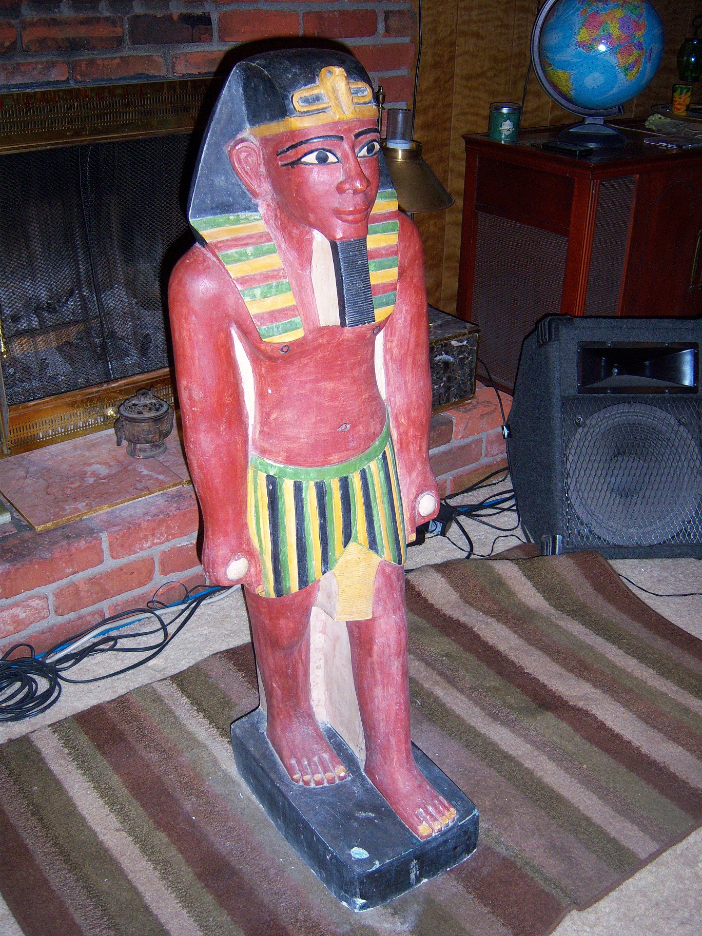 I bought this from an Egyptian family that had a store they closed in Egypt. It came with 70 other older pieces of revival era Egyptian handmade pieces.This King Tut statue is carved out of a solid slab of Egyptian limestone that was originally 3' 5" tall X 1' 2" wide X 1' 2" depth. This is very heavy handcut stone (not cast) with old world style polychrome paints.Most likely made not long after the discovery of King Tut's tomb in 1922.