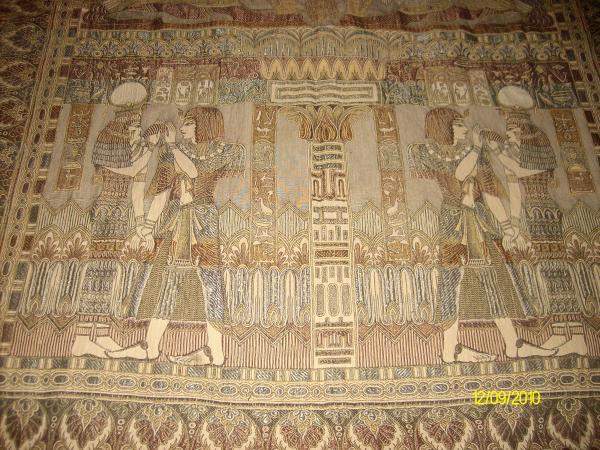 Egyptian Revival Tapestry? its not that easy to answer. Just by what you posted, is to little to work with, I can give you a lot of prices.. But what is needed from you,, What is it made of? Silk or Cotton? Is there a name on it, and Tag?,,Close up of any damage, the edges,Who did you buy it from?, It is hand woven? (How do you know this?)