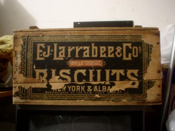 E.J. Larabee wooden biscuit crate. One of the many companies that were combined to make what is now Nabisco. Circa 1890.