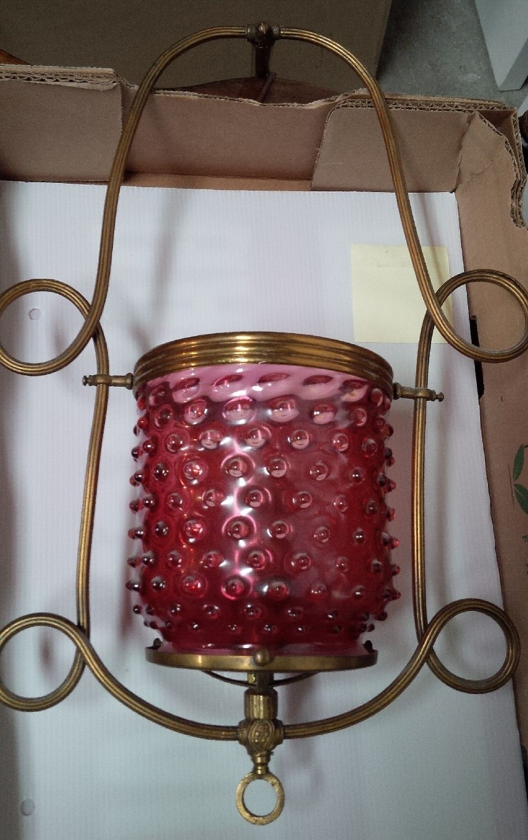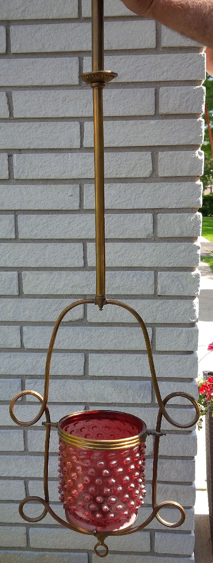 We removed this functioning hanging light fixture just prior to renovating a house. I would greatly appreciate receiving an expert's input/opinion in regards to the style, age, type of glass and an estimated value. Thank you very much!