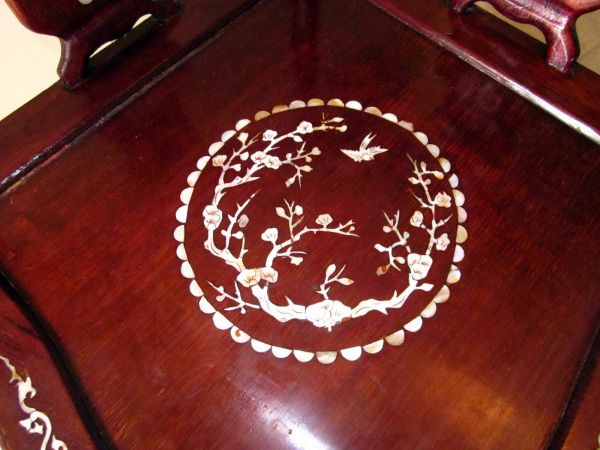 Re: Elegant hand-carved rosewood corner chair with mother of...