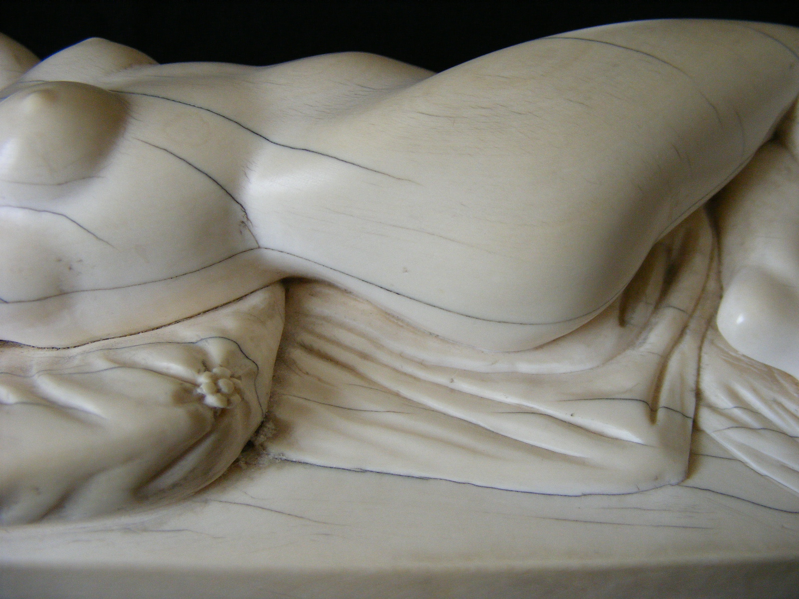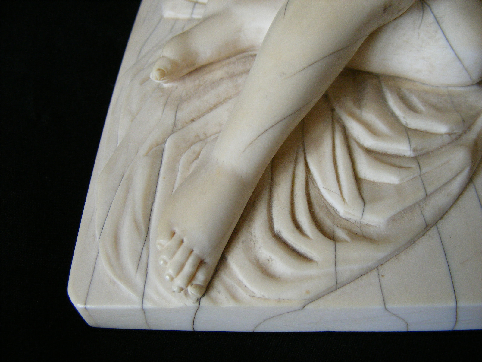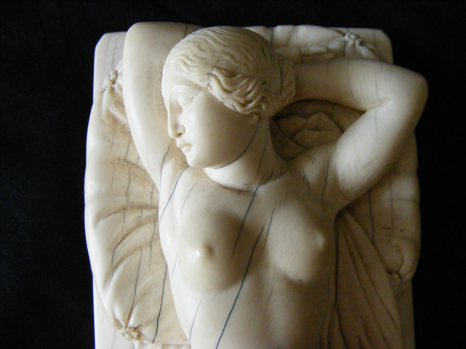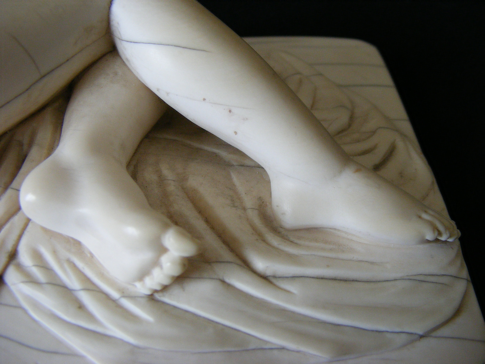 Inherited from my Godfather in NY about 1970. Elephant ivory carving of sleeping Venus after German sculptor Leonhard Kern (17th C). Piece is elephant ivory with Schreger lines. Quite a heavy piece. No discernable signature although there is a small number "15" carved on the reverse (inventory number?) and underlined (see photo). No apparent damage or reairs anywhere but there are ivory age lines. The piece is about 8-1/2" long, 3-1/2" wide and 2-1/2" high. A magnificent carving with a lot of detail. Not a doctor's doll.