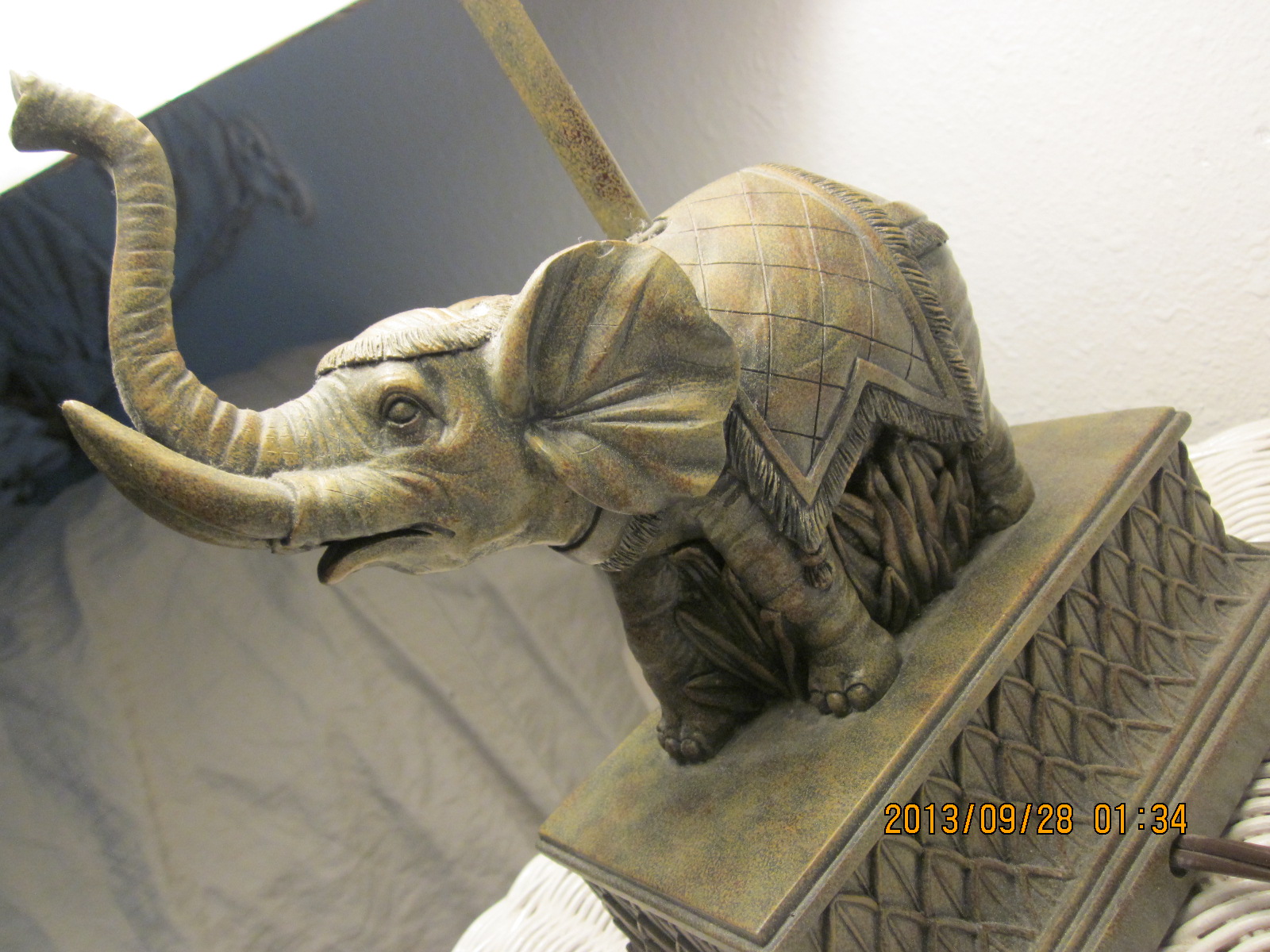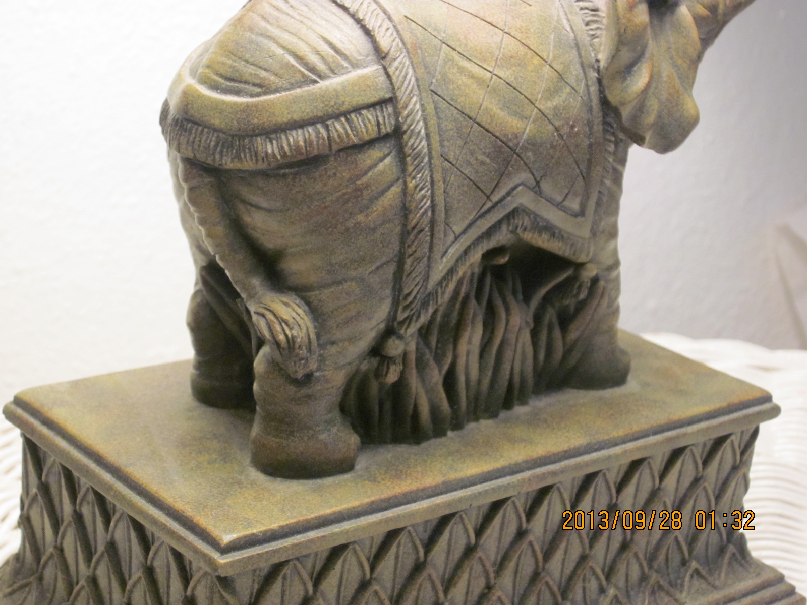 Wish I knew what this elephant is made of or could it have any value. Exsquistly detailed carving color is green feels like some kind of stone. Has anyone seen anything like it.