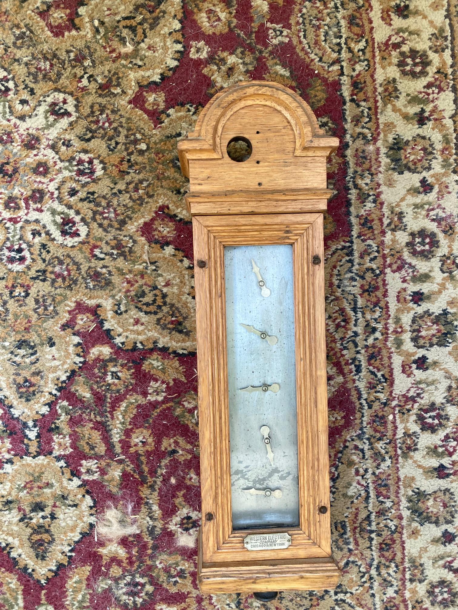 This was used to show what floor an elevator was on. The wood is in good condition. I think it has all the inner workings still, as it's fairly heavy. There are wires protruding from the back.