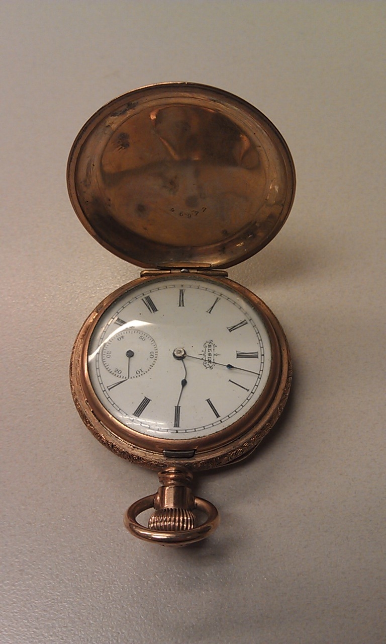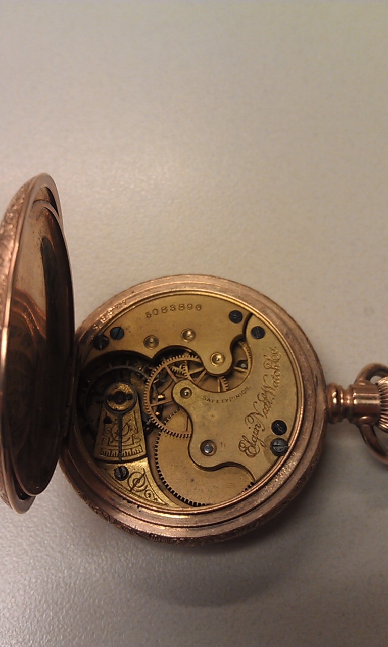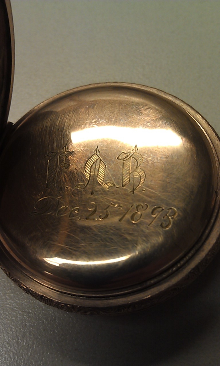 This watch was given to me by my Mom when she moved. It is a beautifully engraved 14k gold pocket watch from 1893. All original