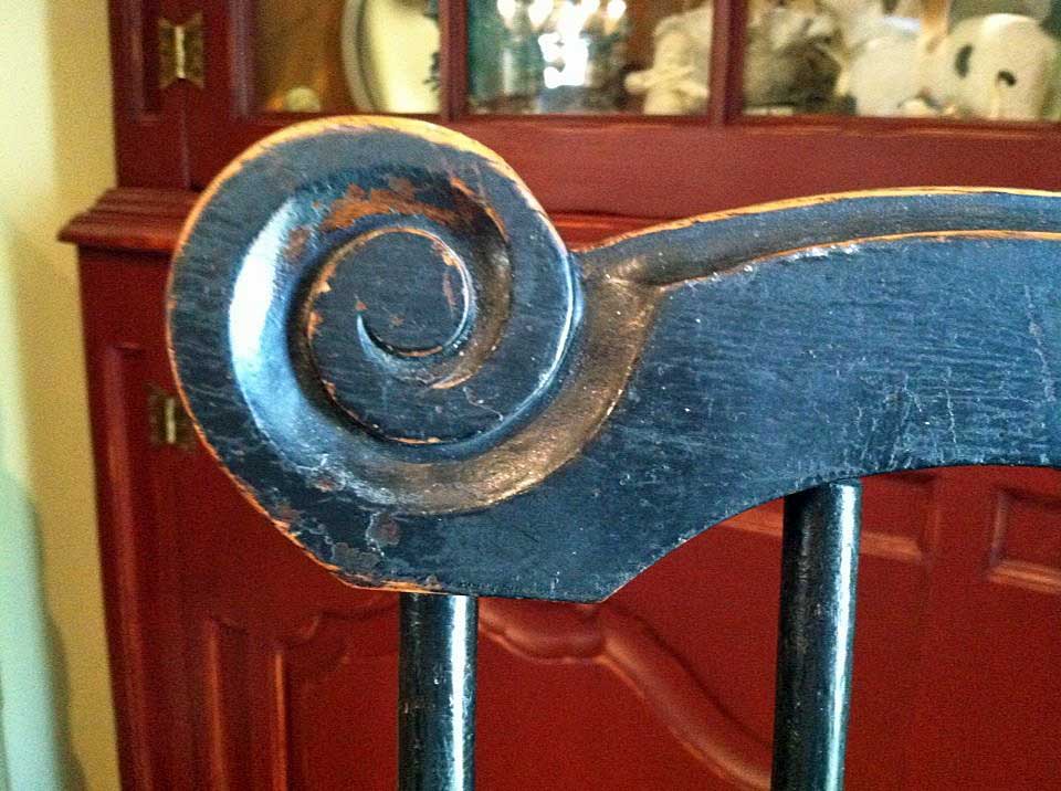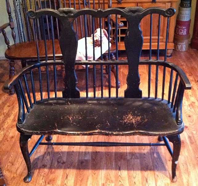 Both pieces appear to have the original black paint. One leg on the bench is damaged. I have the pieces and will repair the leg. Both the chair and bench are structurely sound.