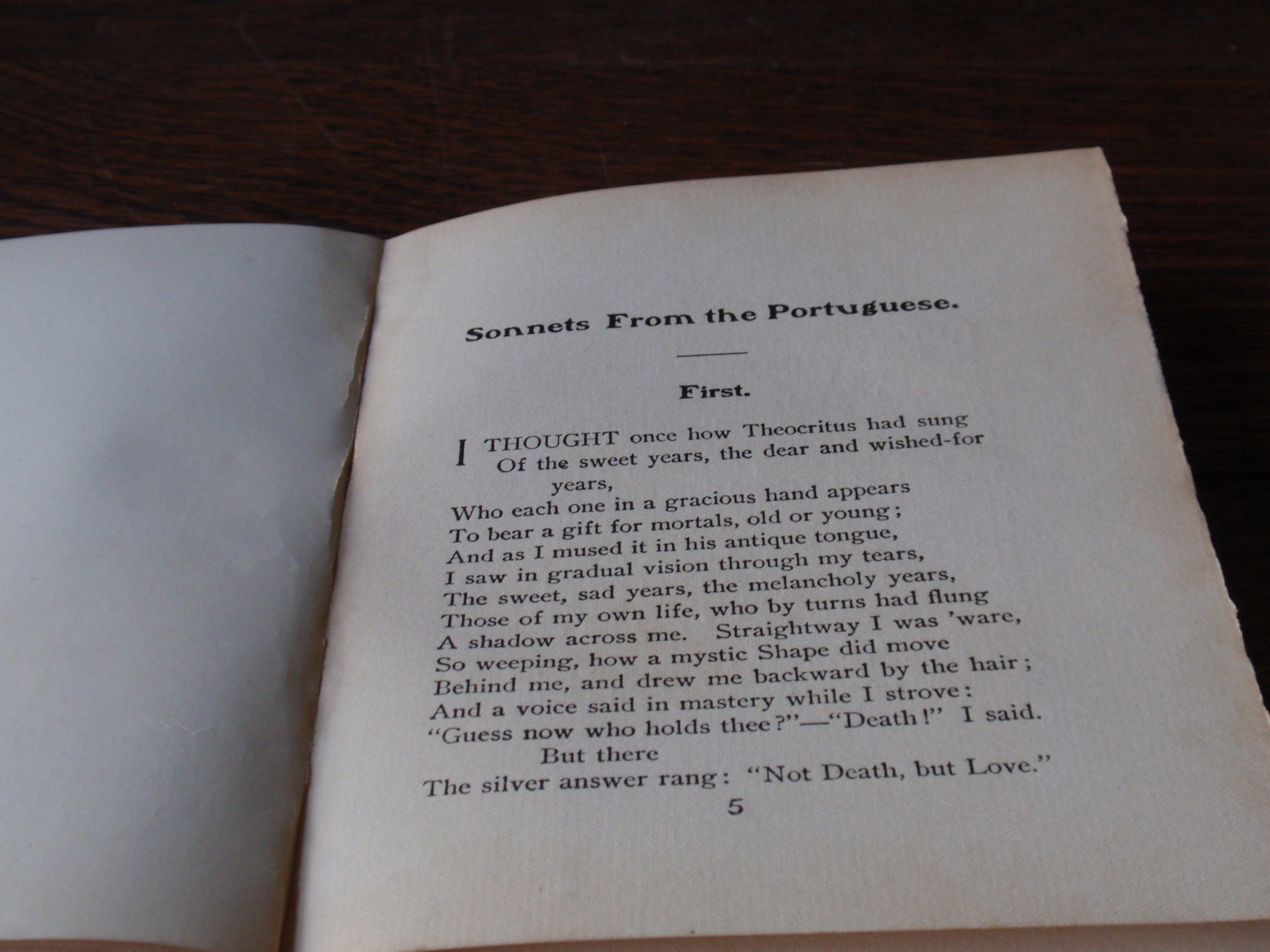 Pictured is a book  written by Elizabeth Barrett Browning  called "Sonnets from the Portugese"