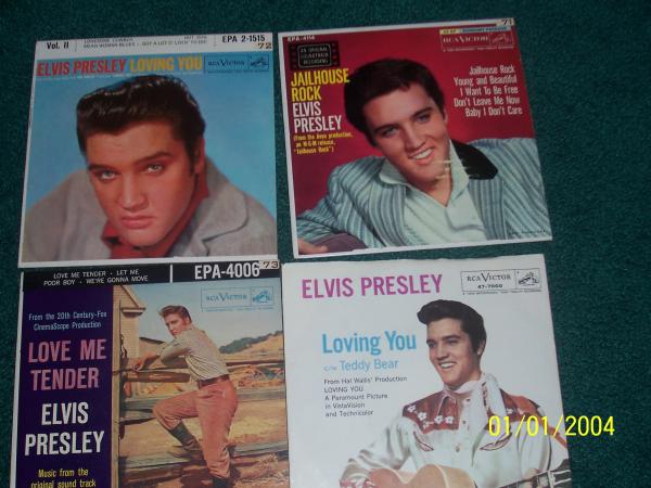 King Creole # 1and 2, song examples -Rip it up, Old Shep, Lonesome cowboy and From jailhouse rock- just to name a few. Some have paper sleeves and some have the hard sleeves.