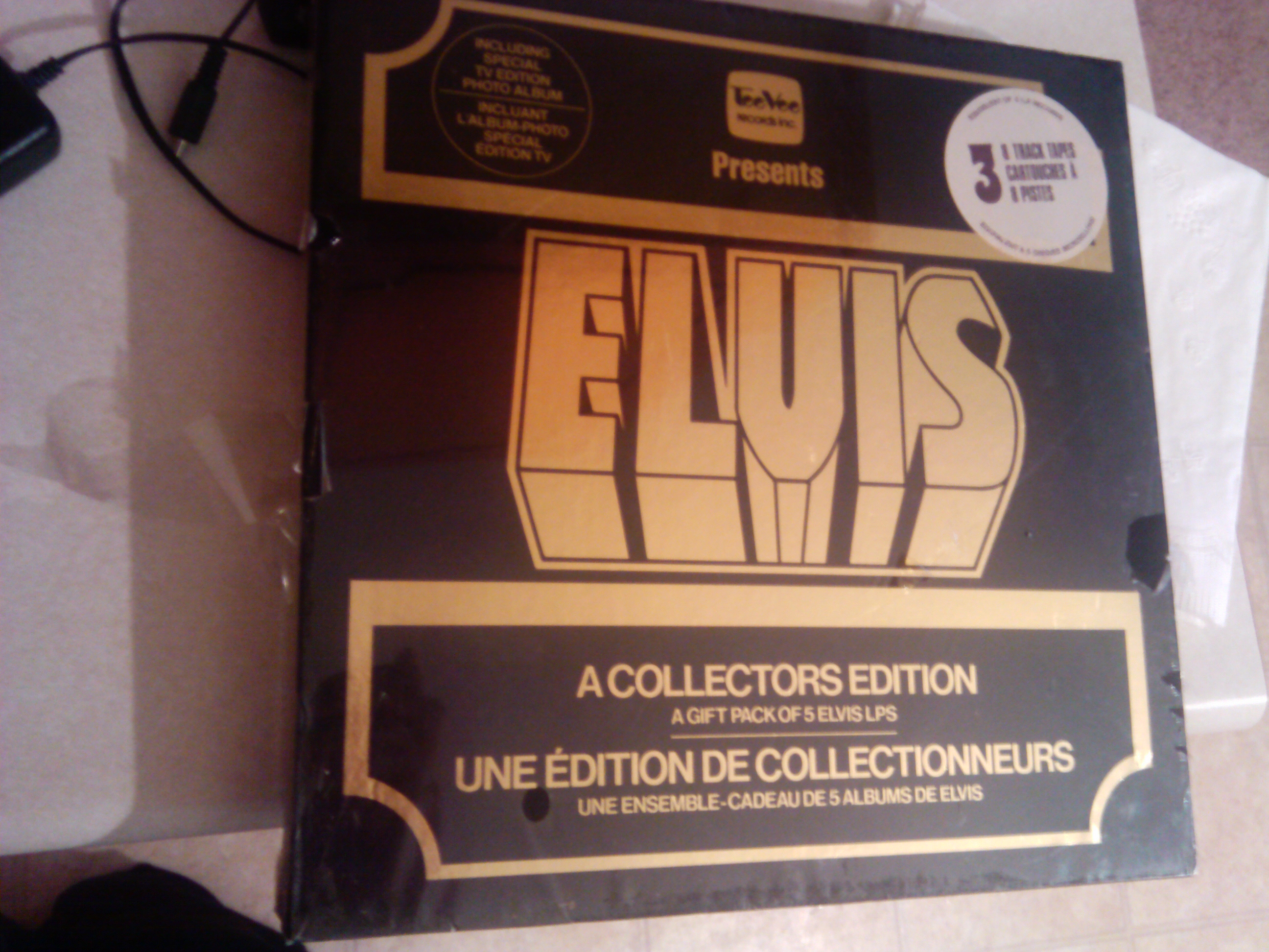 These collectors edition's usually go at auction for 300-350 american dollars. Unopened i would appraise it for 400 american dollars. As for an elvis picture, i would suggest finding a collector of elvis memorabilia and see if they would buy it. As its elvis though i would say its worth something to any elvis fan. If you can not find a collector try online, ebay and amazon are good places to sell things.