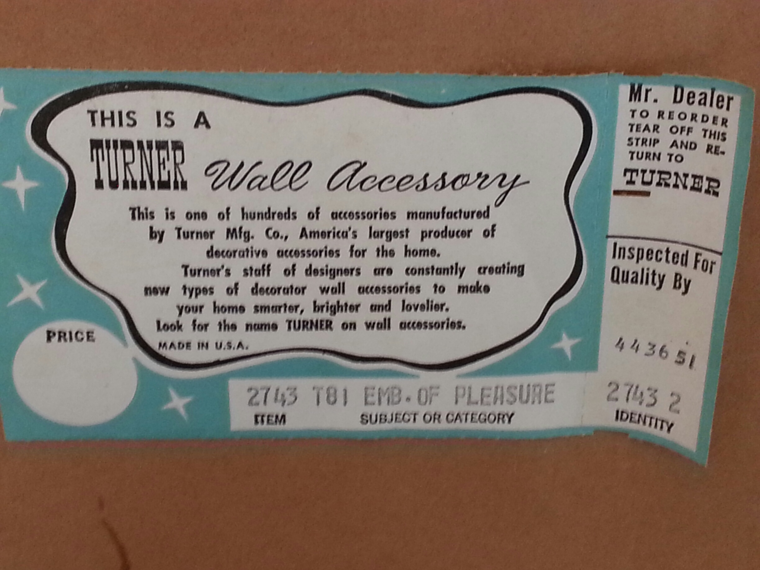 Turner wall accessory Item 2743 T81 Emb Of Pleasure
