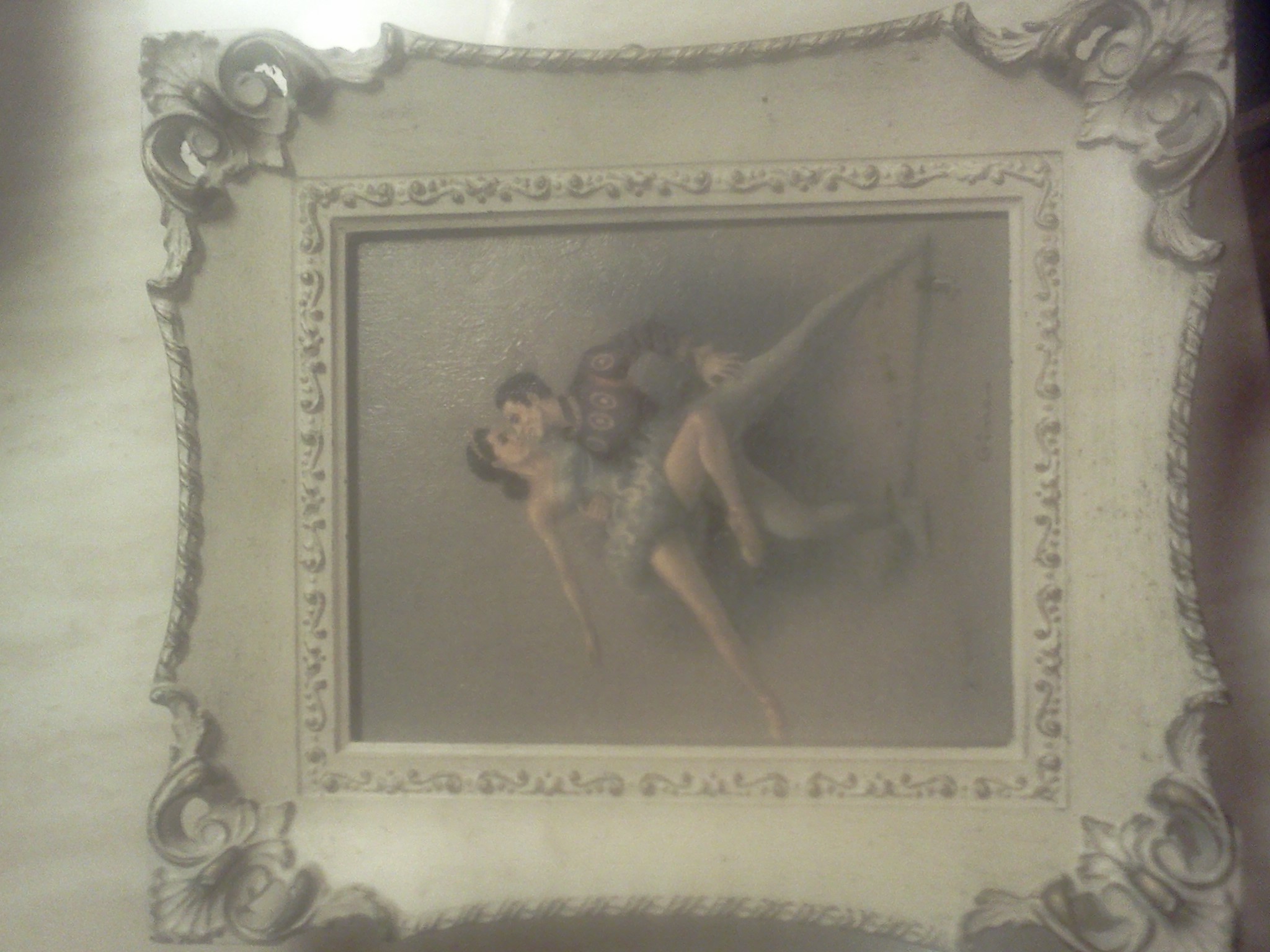 I am not sure if this is worth anything. I have a set of two paintings. The first is 5" x 8". On the back it is stamped " Embrace". The second is about 4" x 5" and has "Coupled Grace" stamped on the back. Both have Windsor Mode styled by Illinois Mldg. Co. on the back and both have a stamp in red ink -P.148-11. These are both oil paintings of a male and female ballerinas. The name "Gina". Is on the front. I know nothing about paintings, but wanted to see if these are worth something.