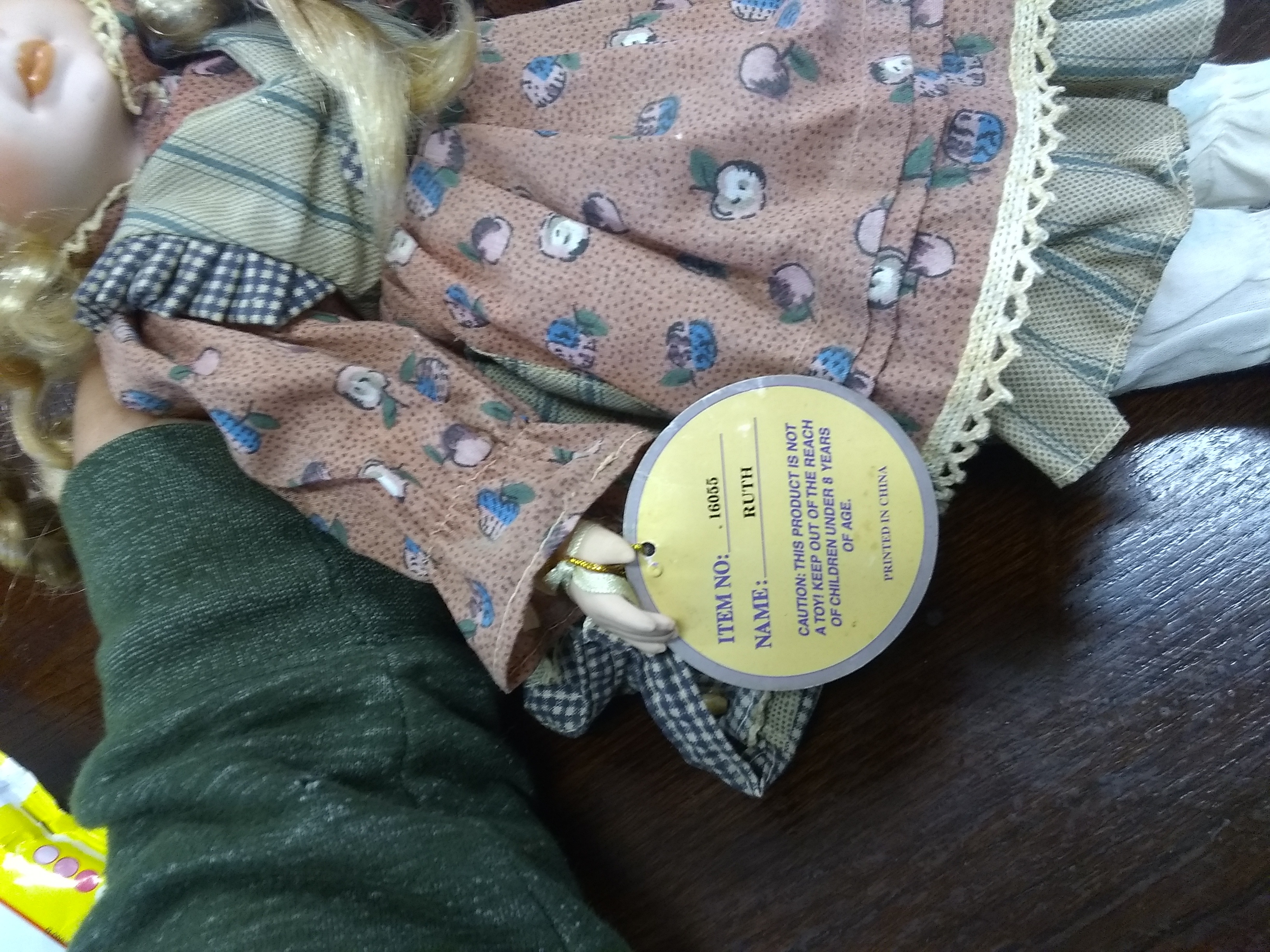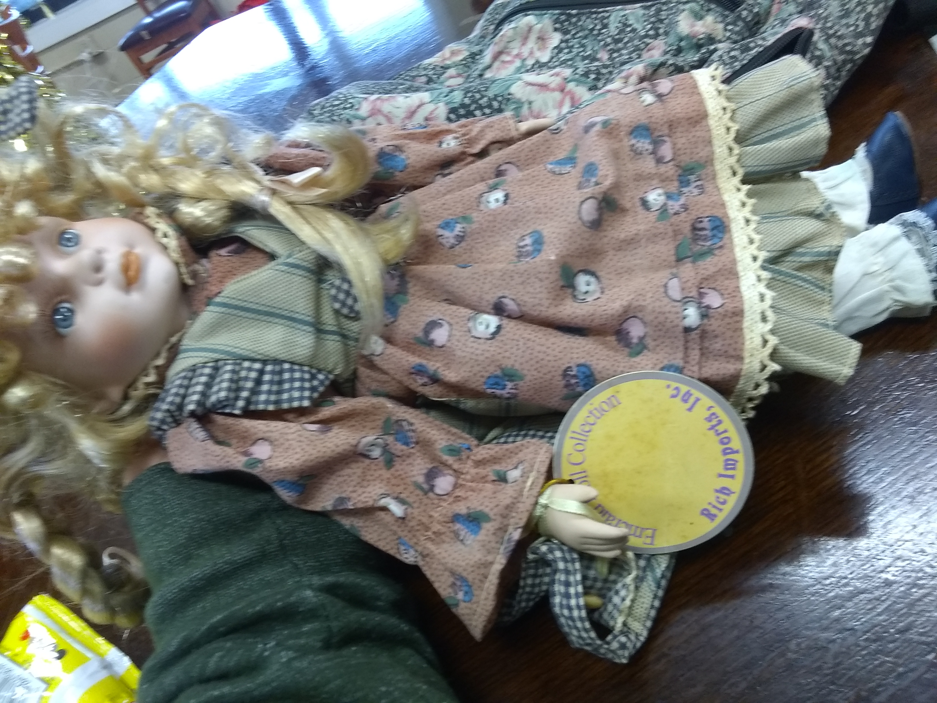 The emerald doll collection brand on the back of the kneck company name rich imports inc.