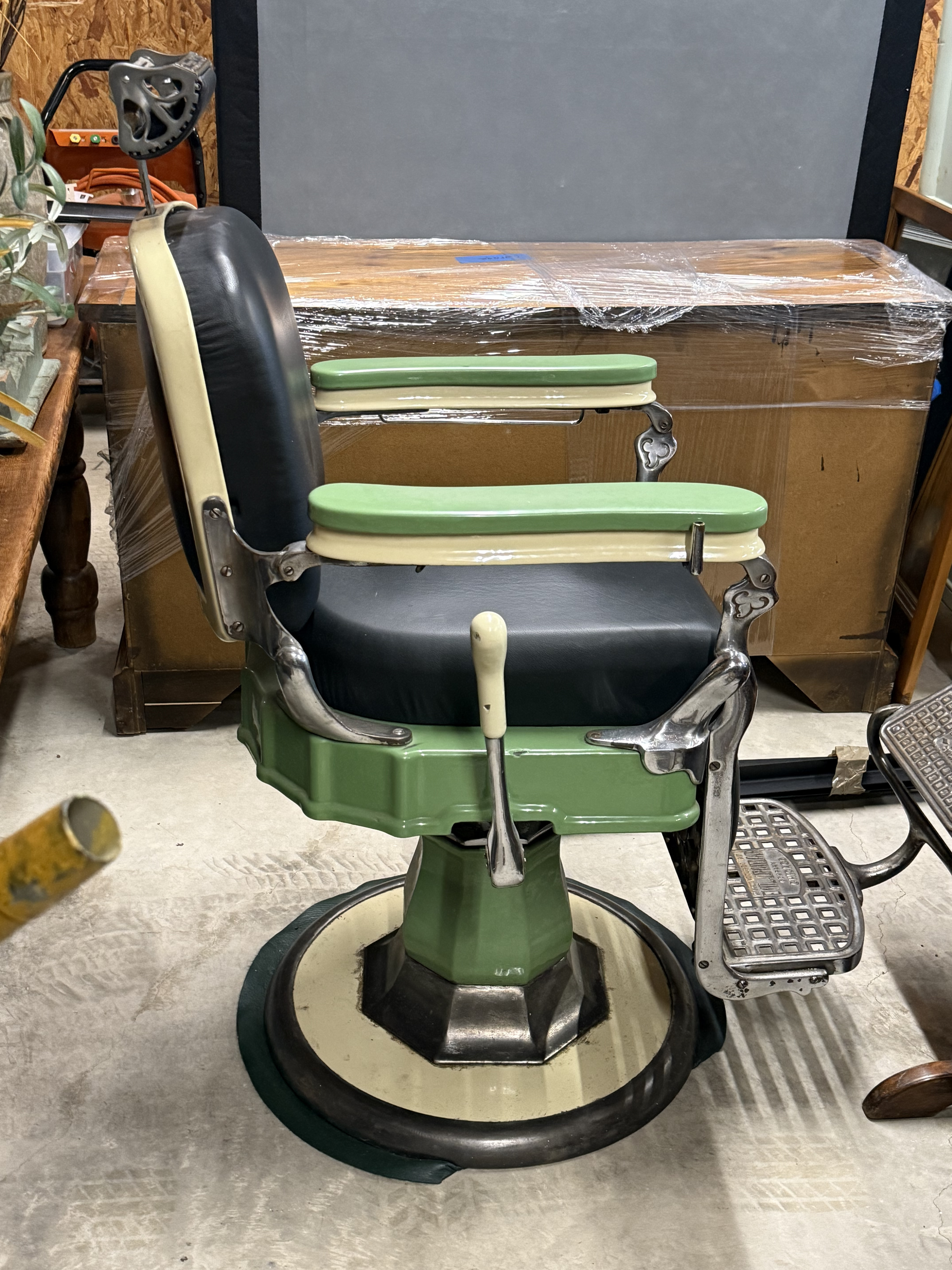 Collectors value barber chairs like the Emil Paidar for their unique design, historical significance, and craftsmanship. The rarity of these chairs, particularly in good condition, makes them highly sought after by collectors of vintage barbering equipment and furniture. The chair's aesthetic appeal and functional design also contribute to its desirability.