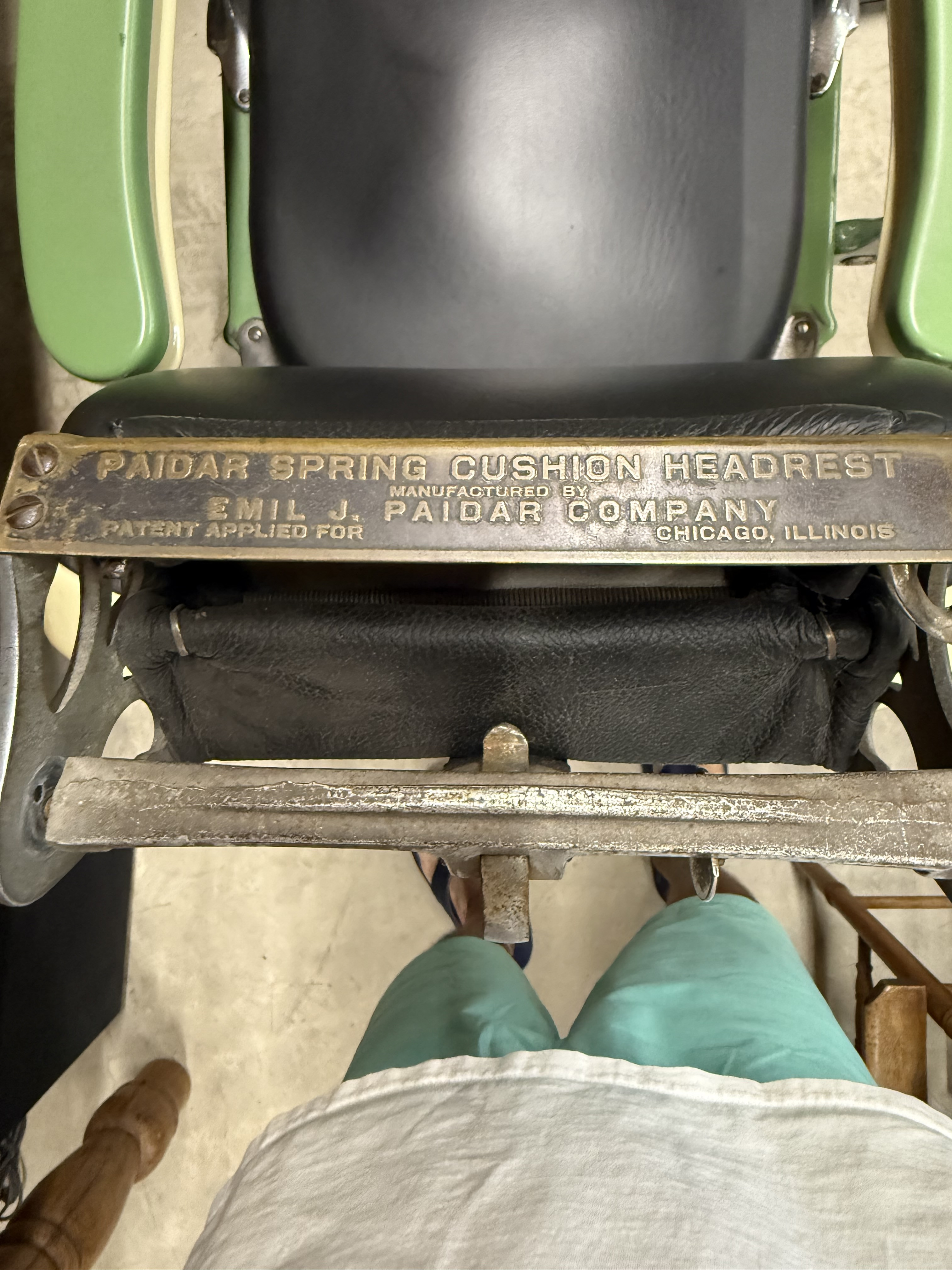 The Emil J. Paidar Company, based in Chicago, was a prominent manufacturer of barber chairs and related equipment during the mid-20th century. This period was marked by a rise in the popularity of barbering as a profession, with many barbershops seeking stylish and functional furnishings. The design of this chair reflects the Art Deco and Streamline Moderne styles, which were prevalent at the time.
