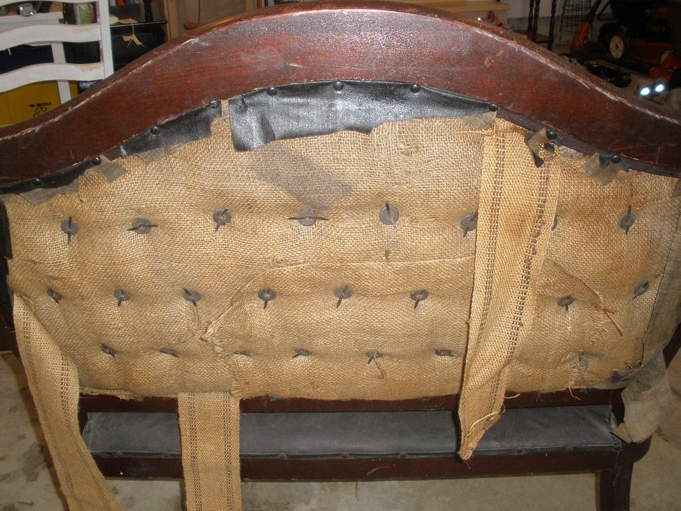 I bought this very beautiful piece last night at an auction...it was advertised as an "Empire" bench. The bench is made of beautiful wood and has leather upholstery. It is stuffed with a mixture of horse hair and straw. I've included several pictures with the hopes that someone can tell me what I have gotten myself into. I would like to refinish and reupholster the piece myself but after inspecting it, I think I may have to send it elsewhere.