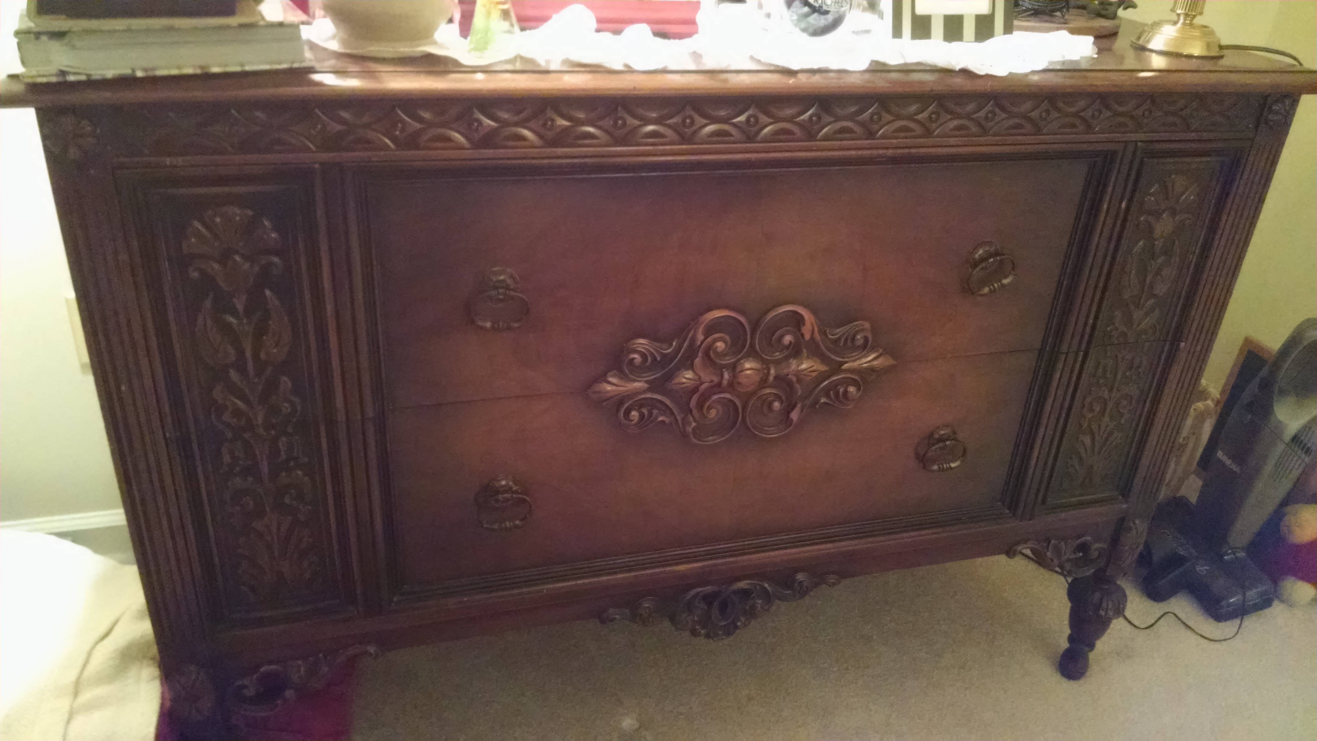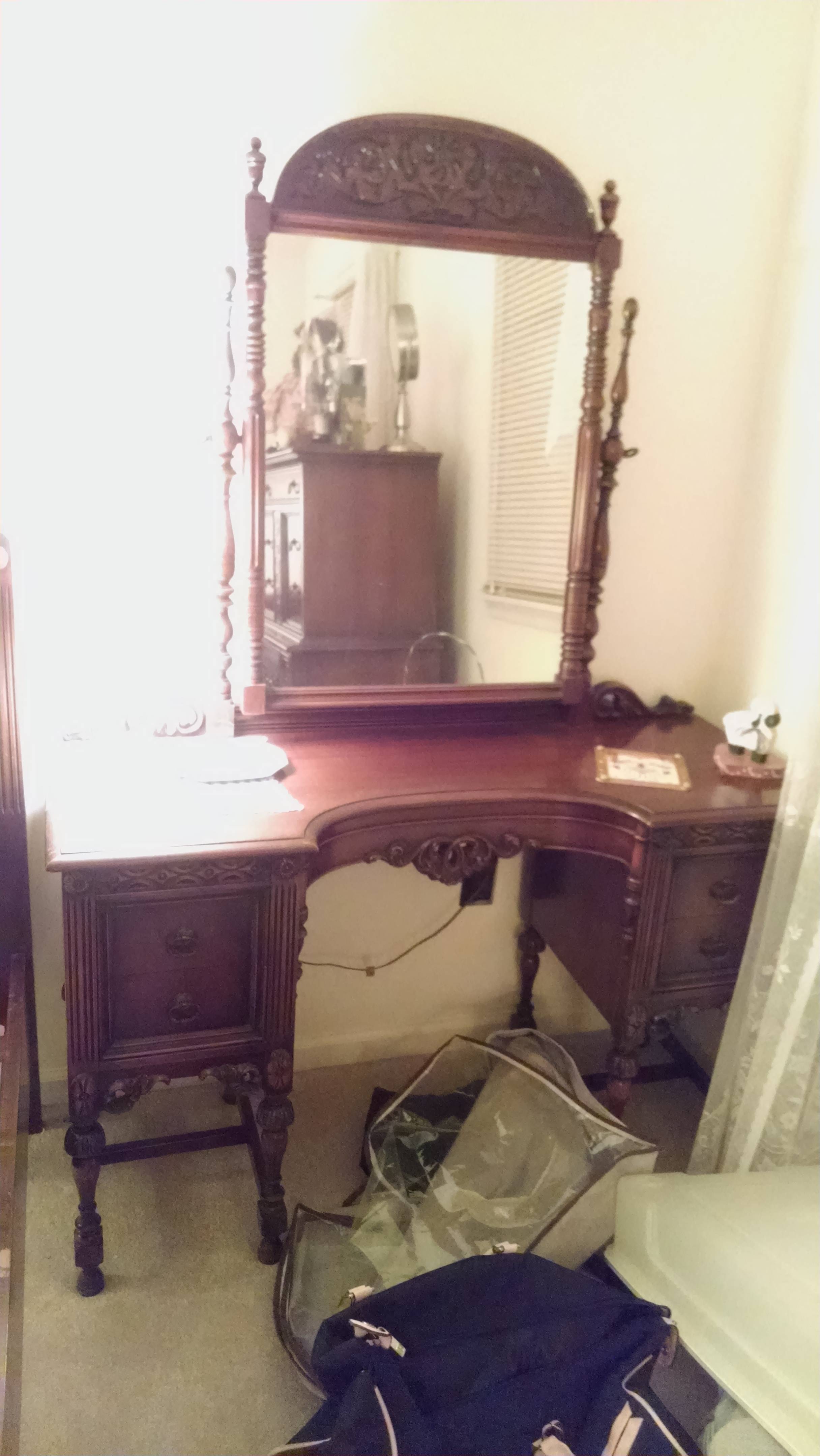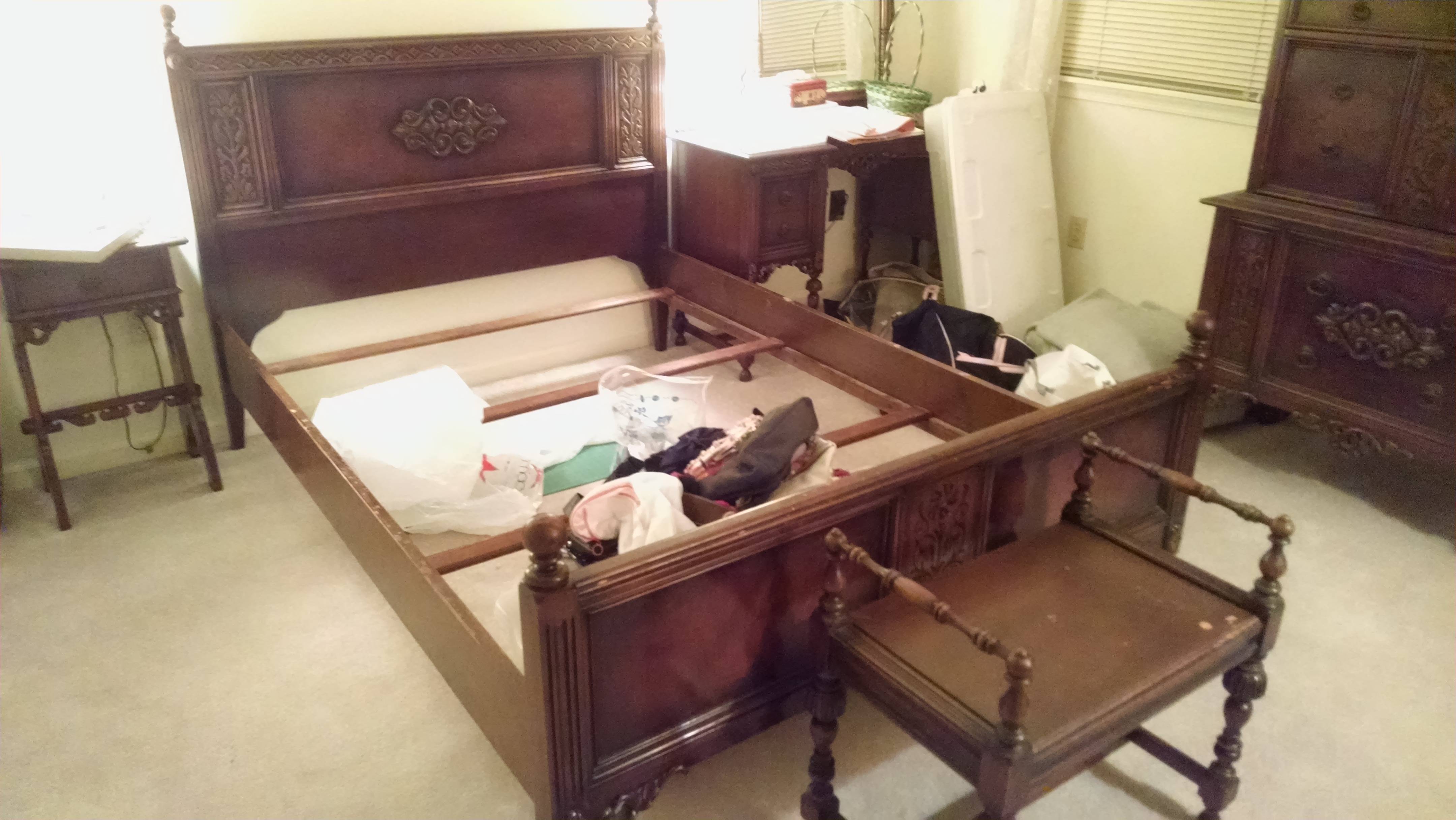 Bed, Dresser, Dressing Table, Stool, Large Chest, and Nightstand. I have established that this set is pre-1935. Would appreciate opinons.
