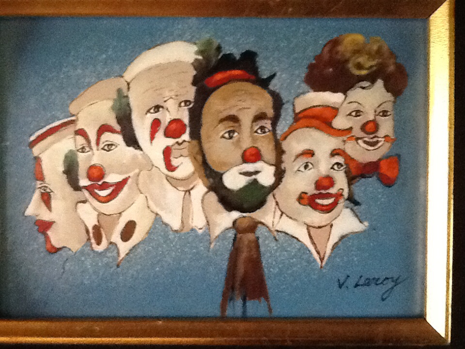 Enamel on copper 6 Clown Faces signed by V.Leroy