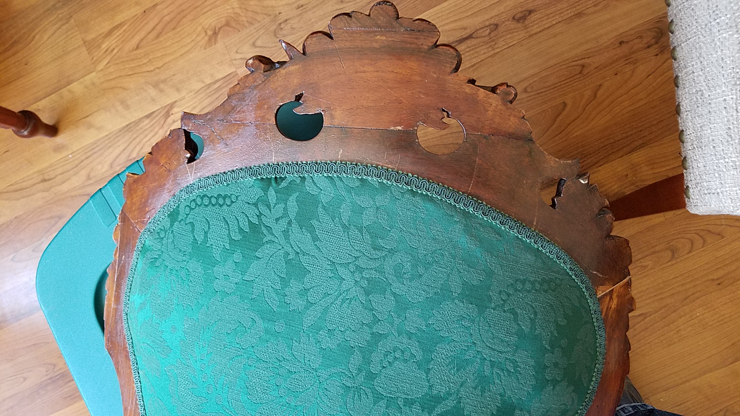 Parlor chair from my Welsch heritage on my Mums side. Believe it to be Louis XIV ?, but not entirely sure. Was brought stateside in 1850's. Hoping to determine insurance valuation. Thank you for your kind review. -David
