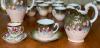 The item has a few scratches in the back and a corner piece missing at the top right. There are two halves which sit on top of each other but they appear to be same color, different styles. THe top style has a japanese style print on it and the bottom piece has a shell in the middle of the door. The wood appears to have been stained a very dark brown color for both pieces and they appear to be from the same marching set.