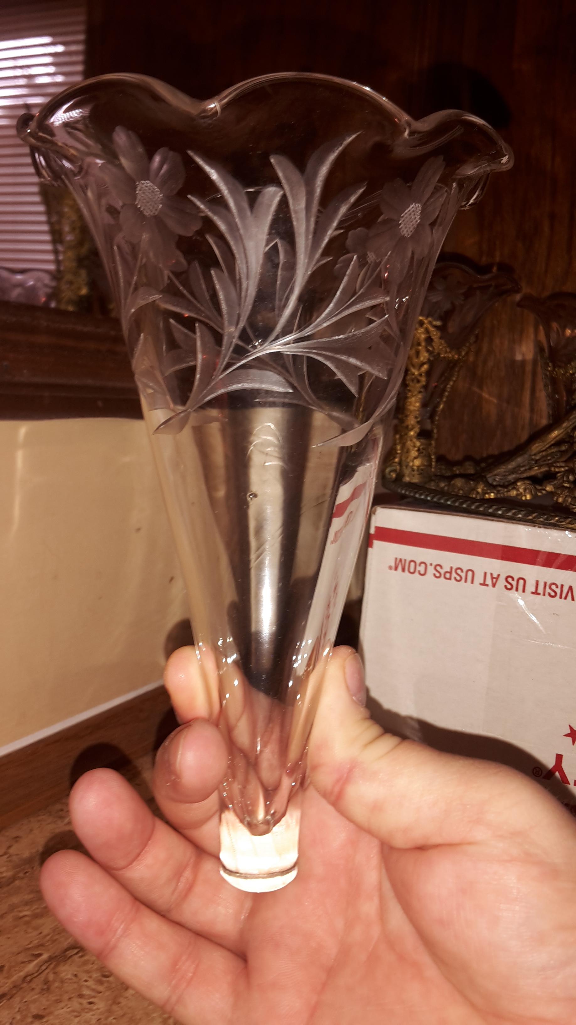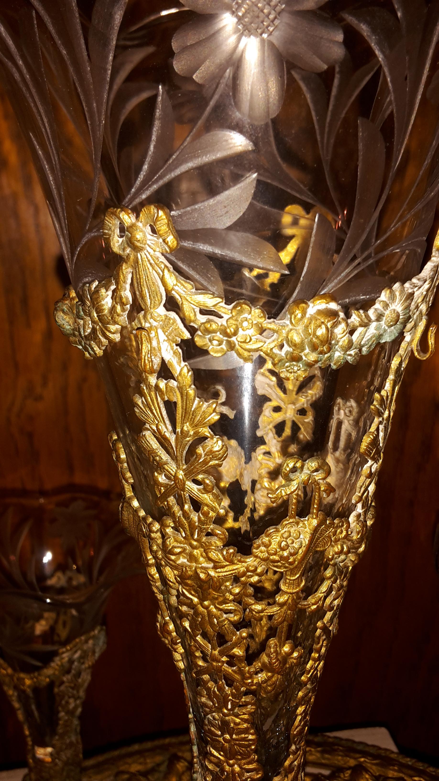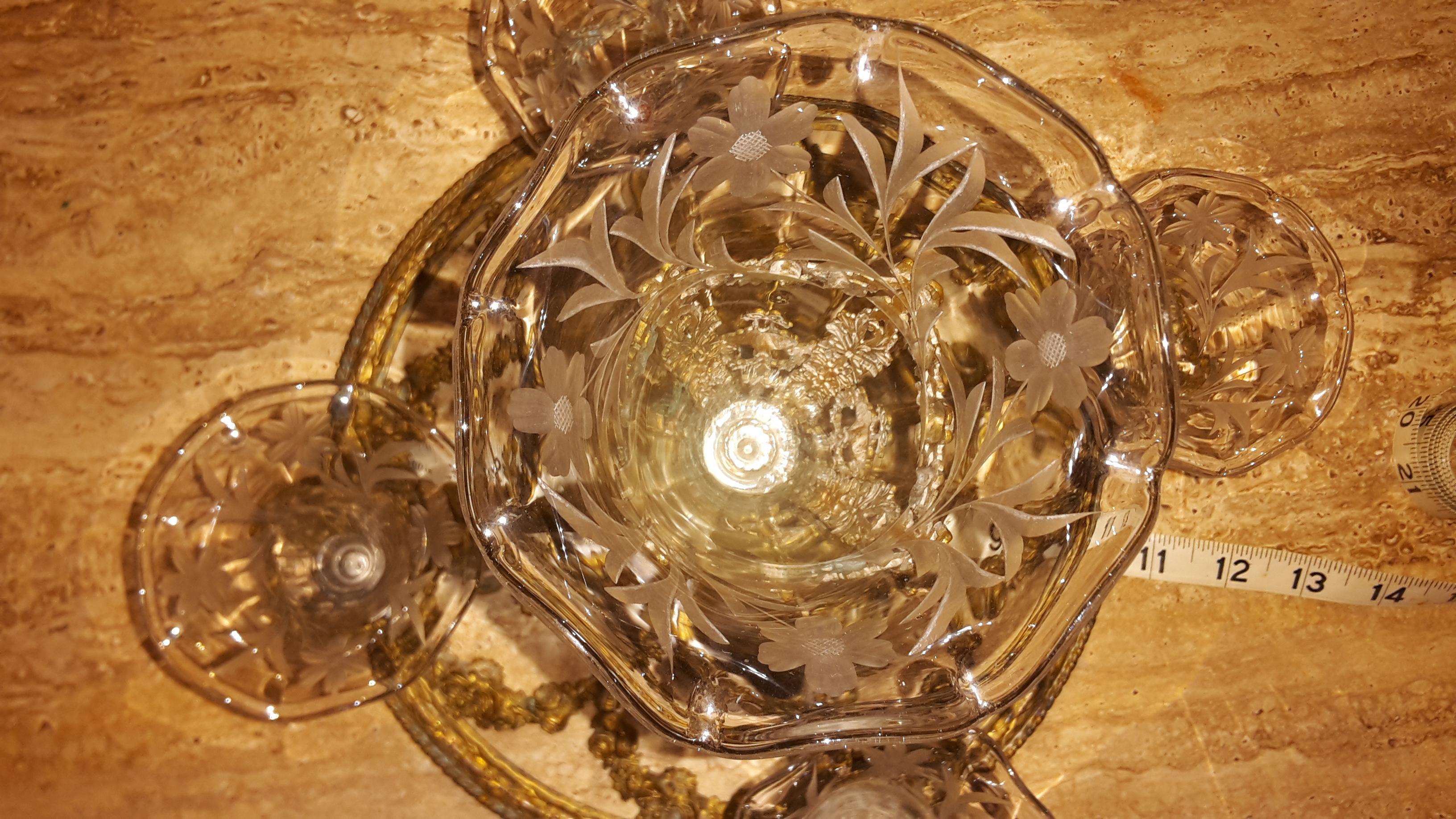 Re: Epergne Brass and Etched glass flower vases