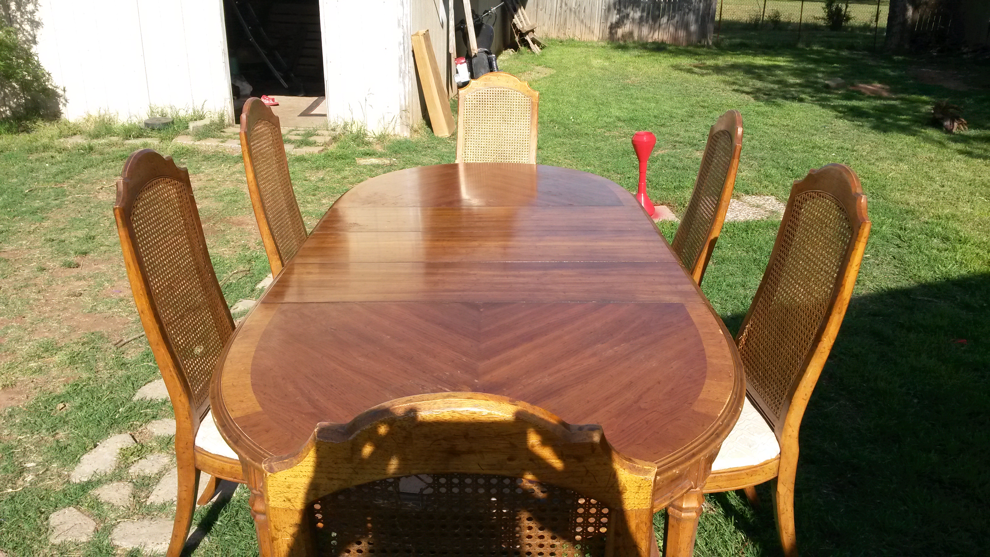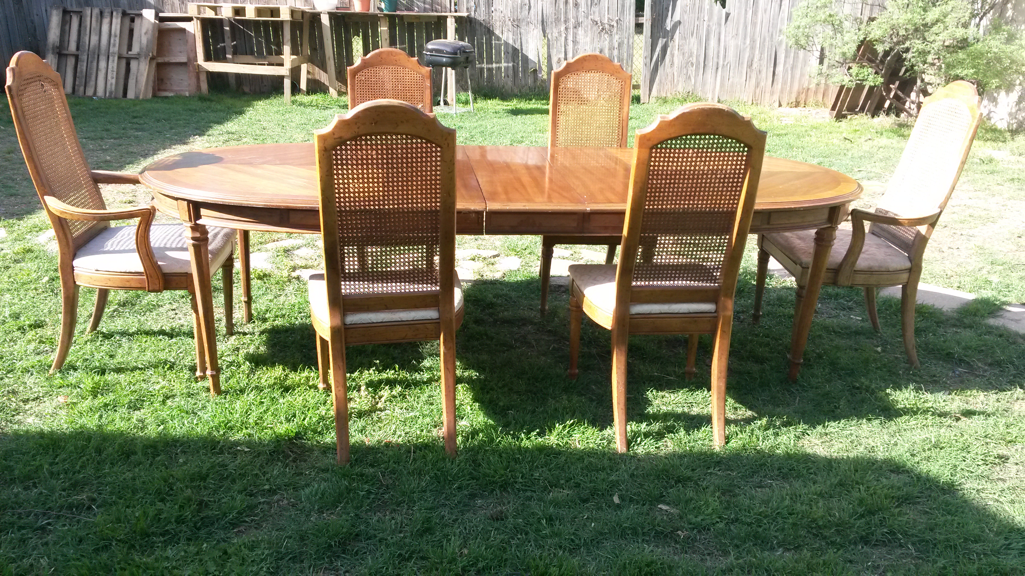 I have the same set in my house but am looking to replace the cane backs on the chairs. How much would you quote for all 6 chairs? A local furniture repair company quoted me $204 per chair to repair them. Im not really looking to spend $1200 just to repair the chairs. If its possible could you send me pictures of the chairs so i can look at the caning on them?