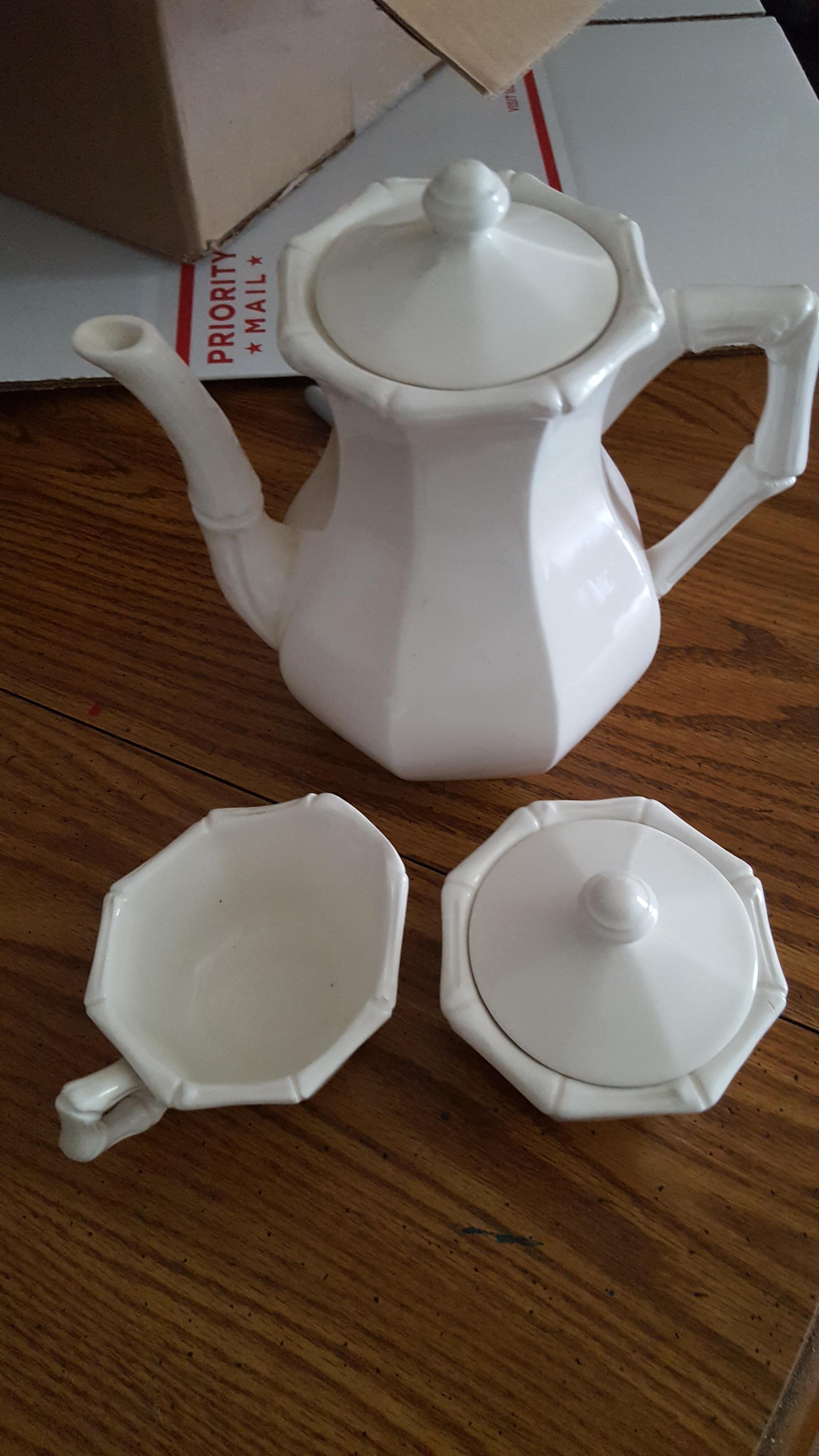 I purchased this recently at an estate sale, but can't find much on it. It is a coffee pot, creamer and sugar dish in creamy white. I thought it was very pretty. Just wanted to find out information. Thanks.