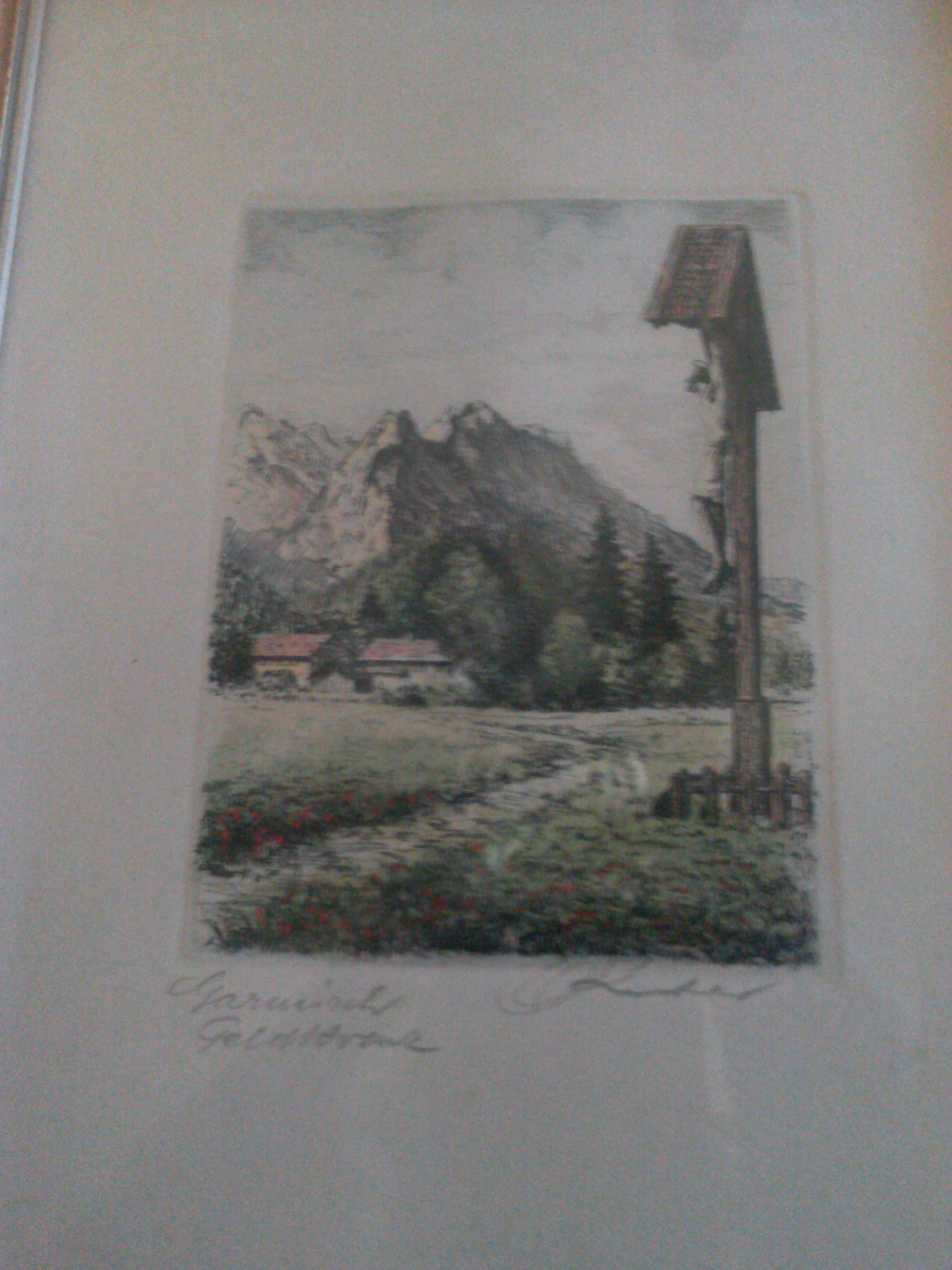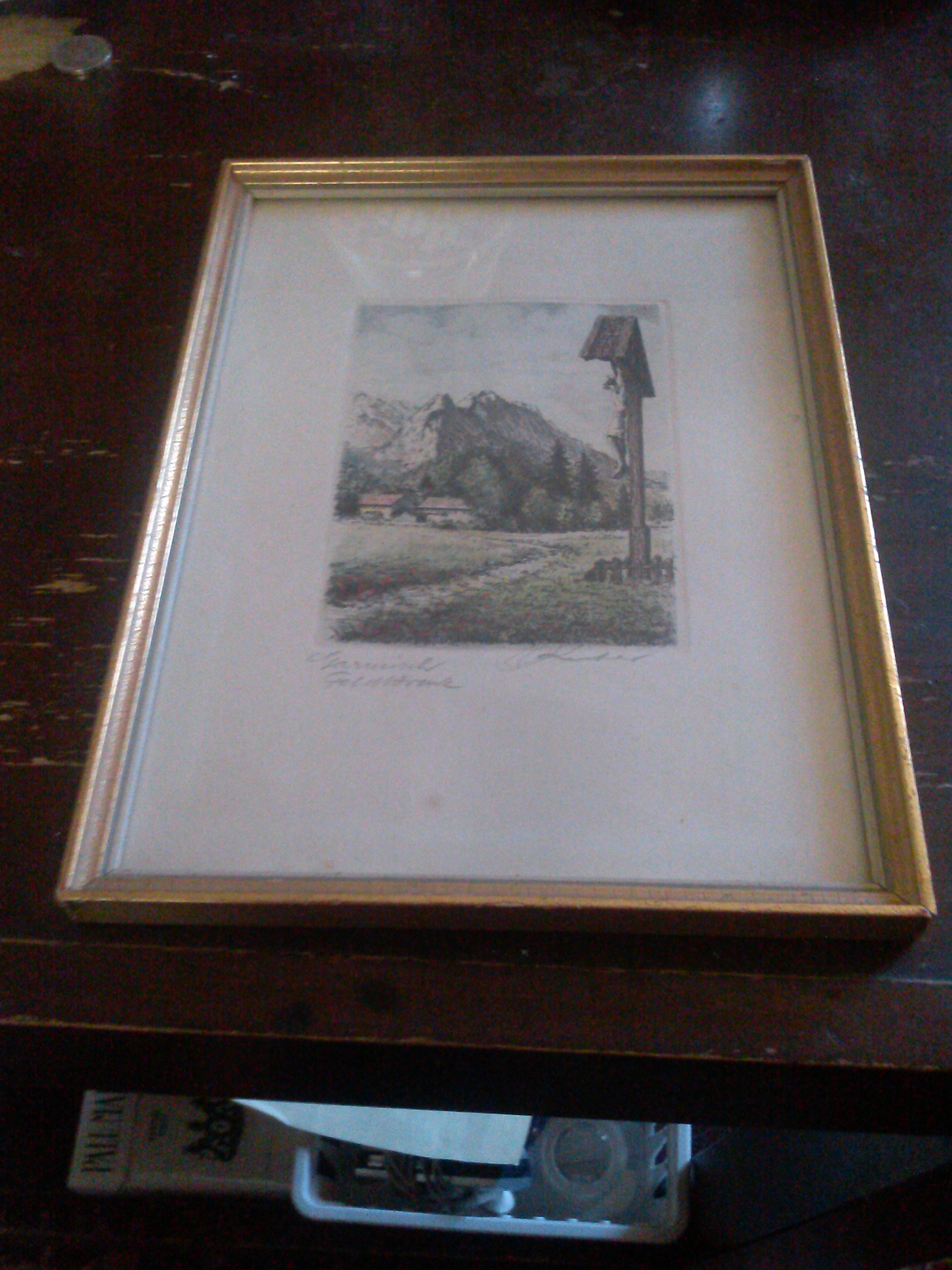 I have been told this is an etching that was hand tinted. I think from the 1940's. I was told the date based on coloring of paper and possibly the frame. I was told the glass was replaced at one point, because the glass is not pitted.