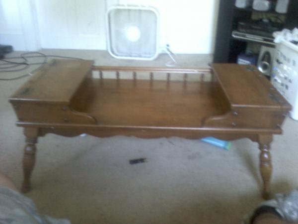 First pic is a side view of the Ethan Allen Heirloom Collection 1971 coffee table.