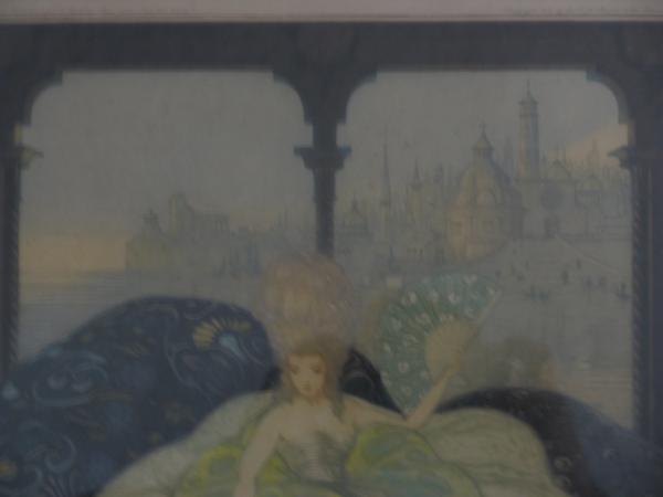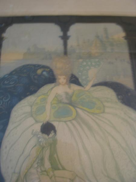 This lithograph is a mystery to me as I have never been able to find anything on it. It appears to be a picture of a princess in Paris, France. The drawing looks two dimentional on the floor that is why I believe it to be a Lothograph, it appears to be a drawing and not a painting. On the top right it says; Copyright 1921 by the F. H. Breslow & Co. Milwaukee _ U. S. A. It is stamped on the bottom left corner witht he companies initials and is raised. It appears to be written in pencil also on the bottom left the number 103. On the top left it says; Publie par Estamper moderne, 14 rue Richelieu, Paris, 1921_Tmp.Ad.Valcke. On the bottome right a name is written in pencil it appears to say the name Audri Larburs but I am unsure of this accuracy as it is written in cursive. Please let me know if you can shed some light on this for me.