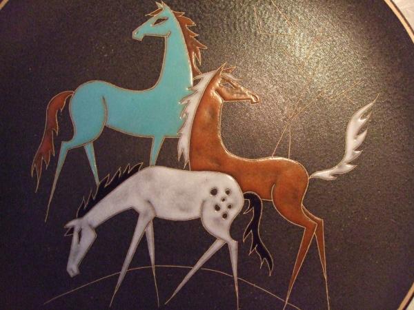 I bought this plate an an estate sale. I believe it is from Germany or Holland because on the back it says handarbeit meaning handmade. It is a beautiful plate with a flat background and glazed horses. On the back molded into the top of the plate is number 717 with the number 2 below it. I would like to know about the artist and its value.
