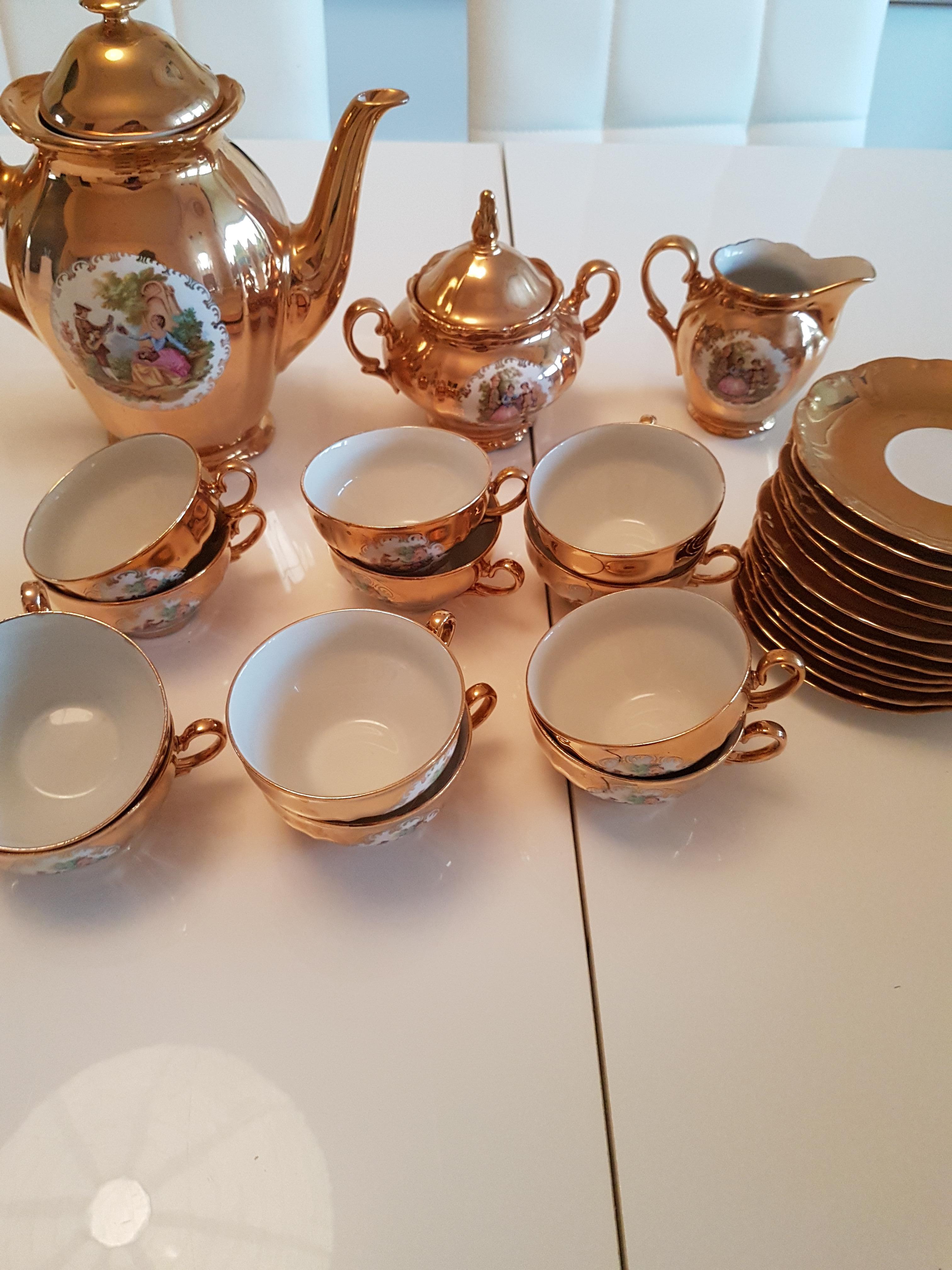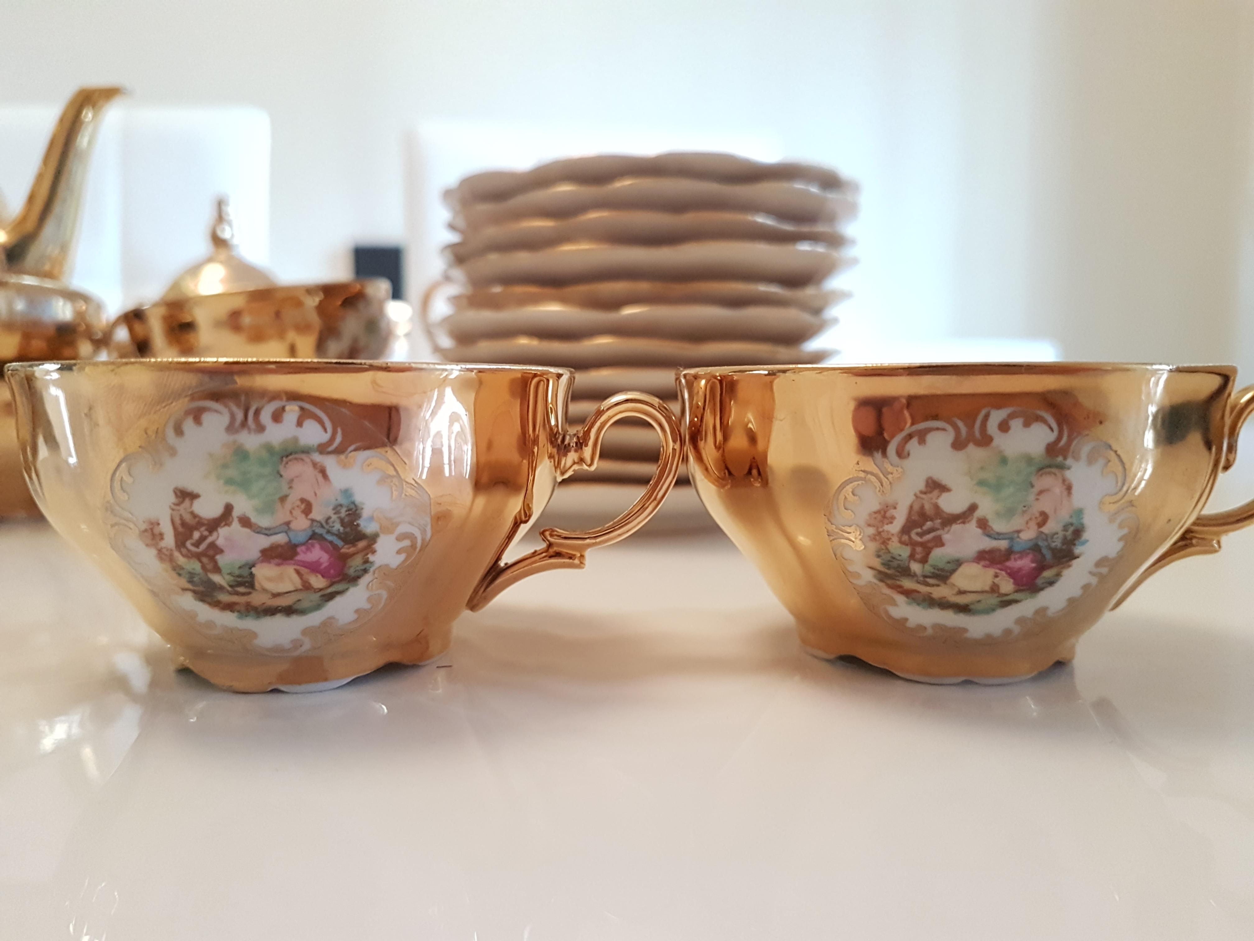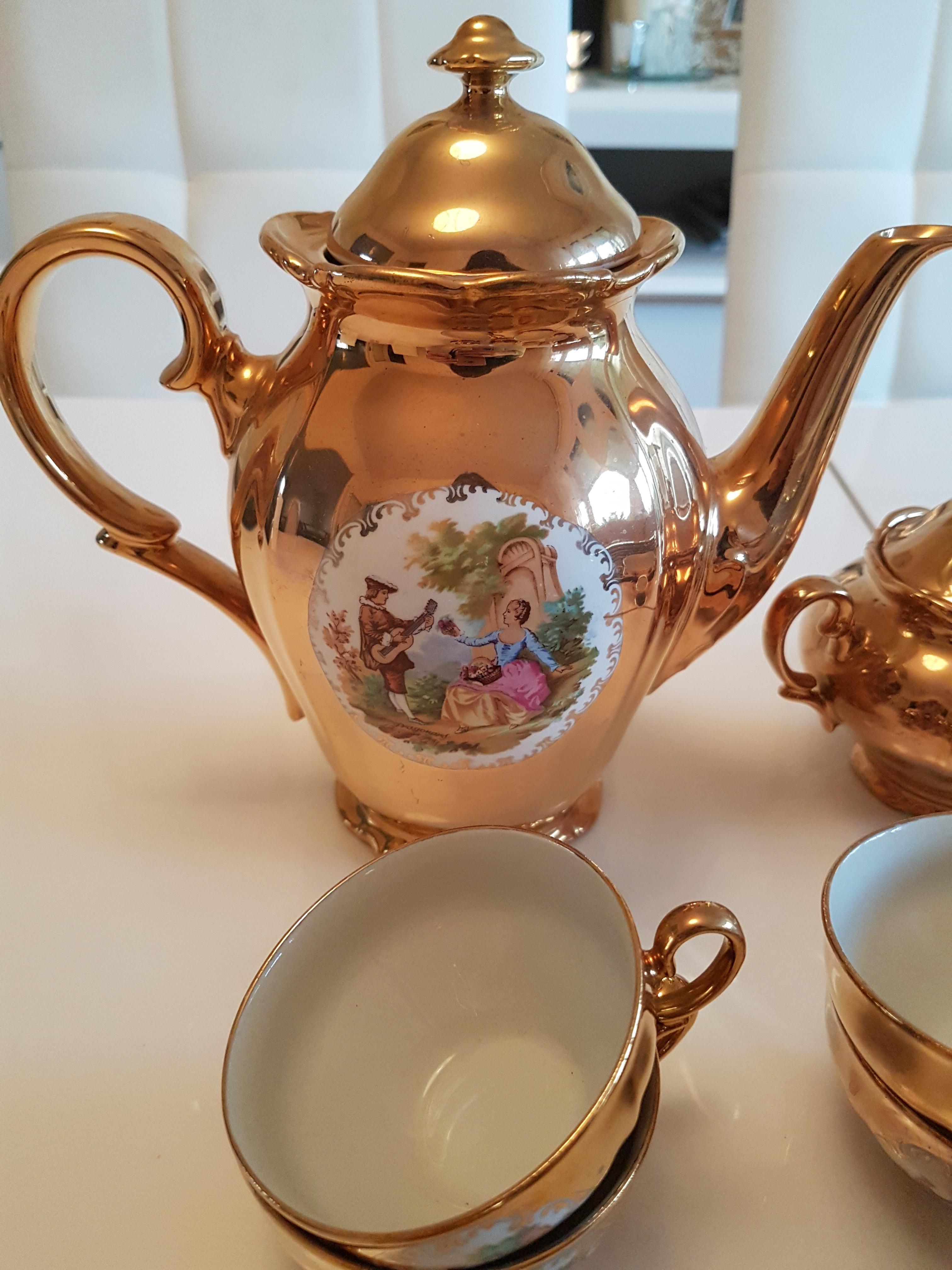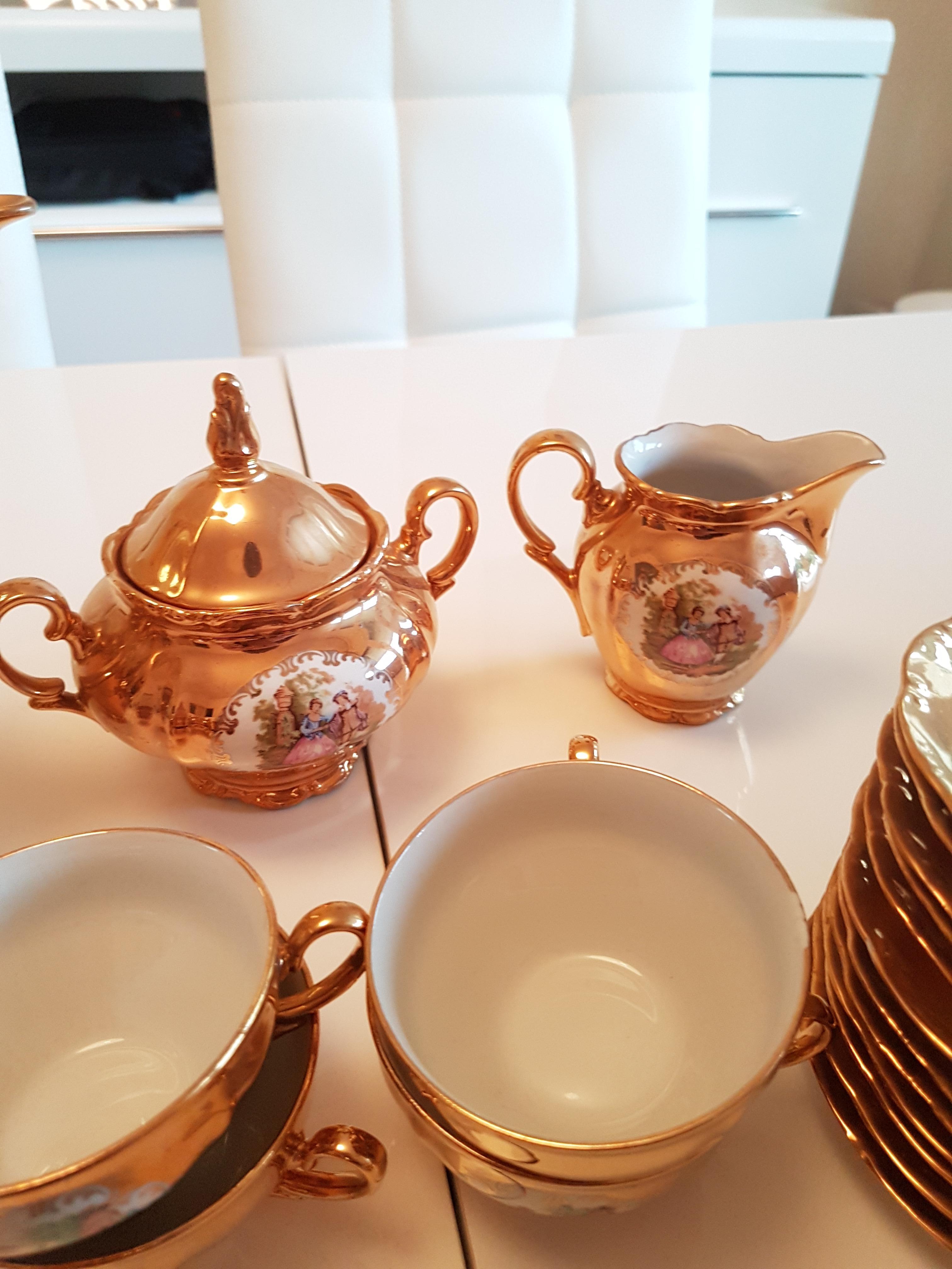 I foumd this set at a second hand market. It was just really beautiful and I purchase items to sell. I just want to know if there is any significant meaning to the set. Unfortunately there is no stamp except "Europorcelain importe" its all rose gold 12 pcs with milk, sugar, tea pots. Found in a small village south of France thank you