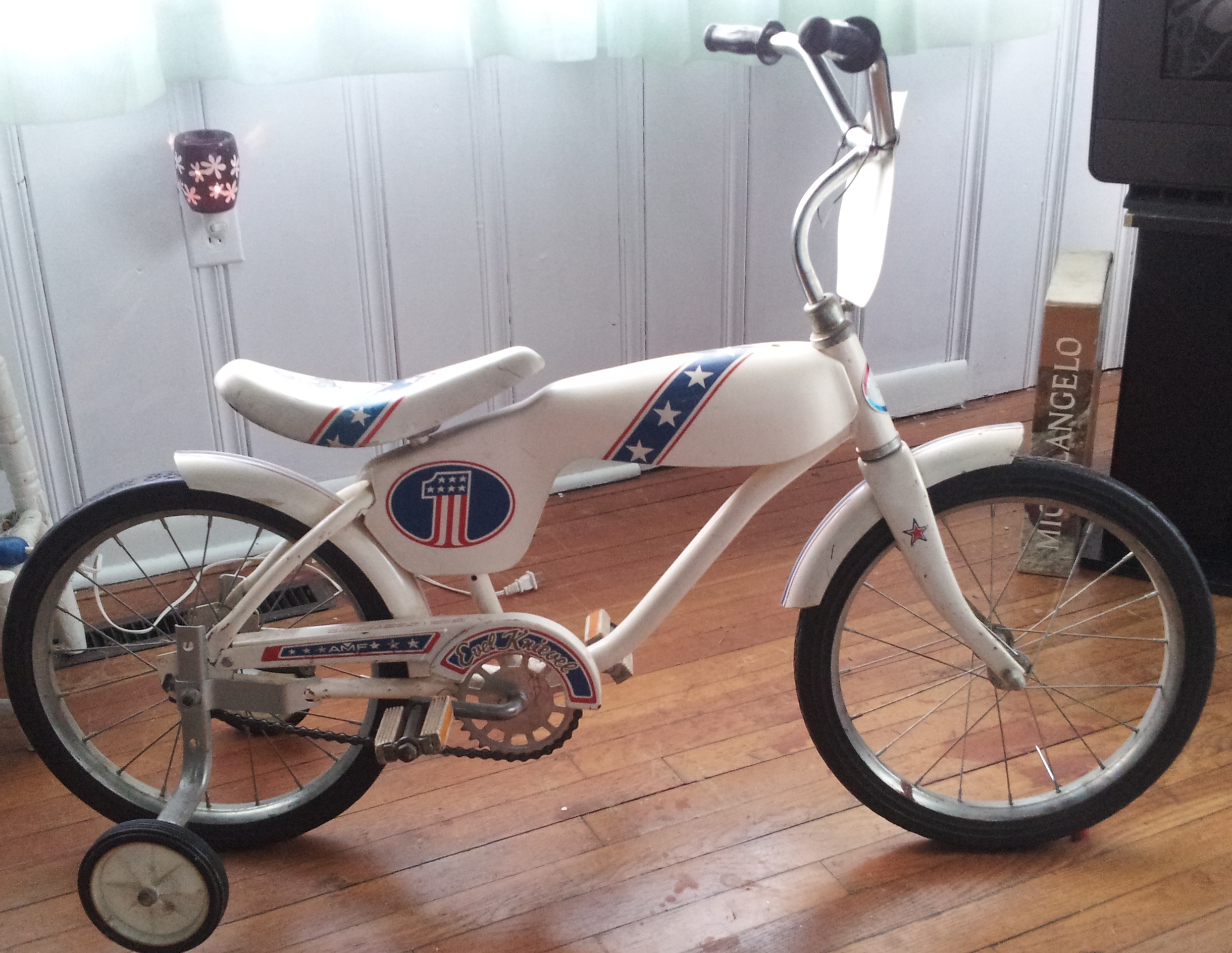 I am looking foe an appraisel amount for an Evel Knievel walkie talkie set and an Evel Knievel 20" BMX bicycle. both in good condition decals intact.