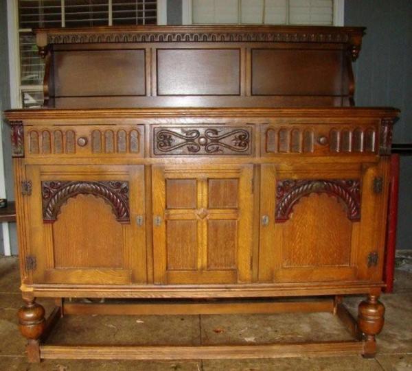 Seems to be a buffet. Middle drawer is lined with green felt and seems to be for silverware. It's not that heavy and is in ok condition. Any info would be great..