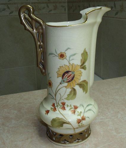Ewer or pitcher has marking on bottom. Not sure if it's and O or a Q 2201 with the number 36 under that. Etched into the ceramic and barely visible is a number I believe is 436.