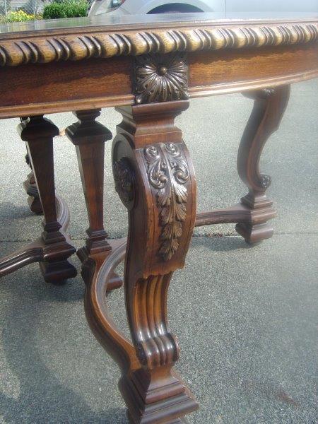 I am trying to get a date and estimated price. The chairs are in poor condition - so I am mainly interested in the value of the table and hutch. There are 2 other matching buffet-style pieces that are being kept in the famly at this point.