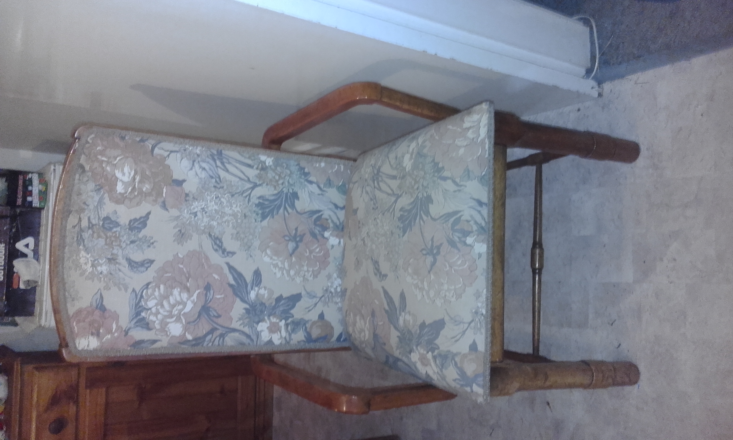 It came with 5 chairs, 2 of which have armrests. The chairs have been reupholstered & I presume that once upon a time there would have been 6 chairs in total.