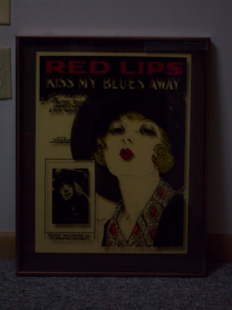 this is a glass advertising poster from 1927 for a song Red Lips Kiss my Blues Away by three artists... it is featured by Al Shayne and the Pelham Heath Entertainers... that is why I have traced it to 1927...