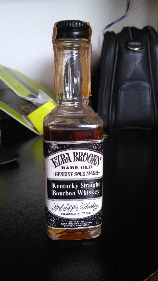 1/10th pint 90 proof, Ezra Brooks rare old genuine sour mash kentucky straight bourbon whiskey.