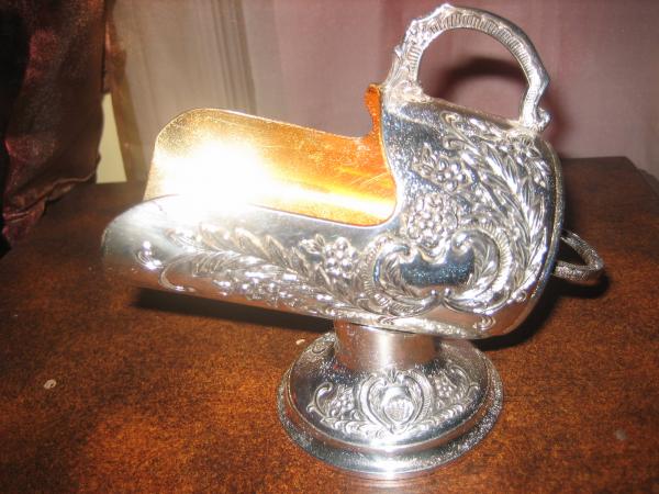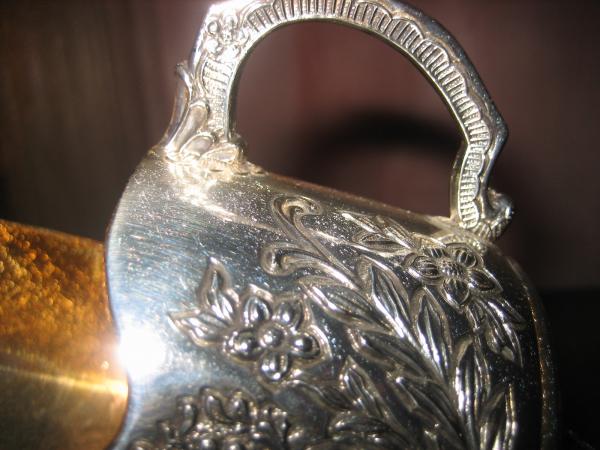 This is a Sugar Scuttle...A spoon would be placed in the slot behing the Handle