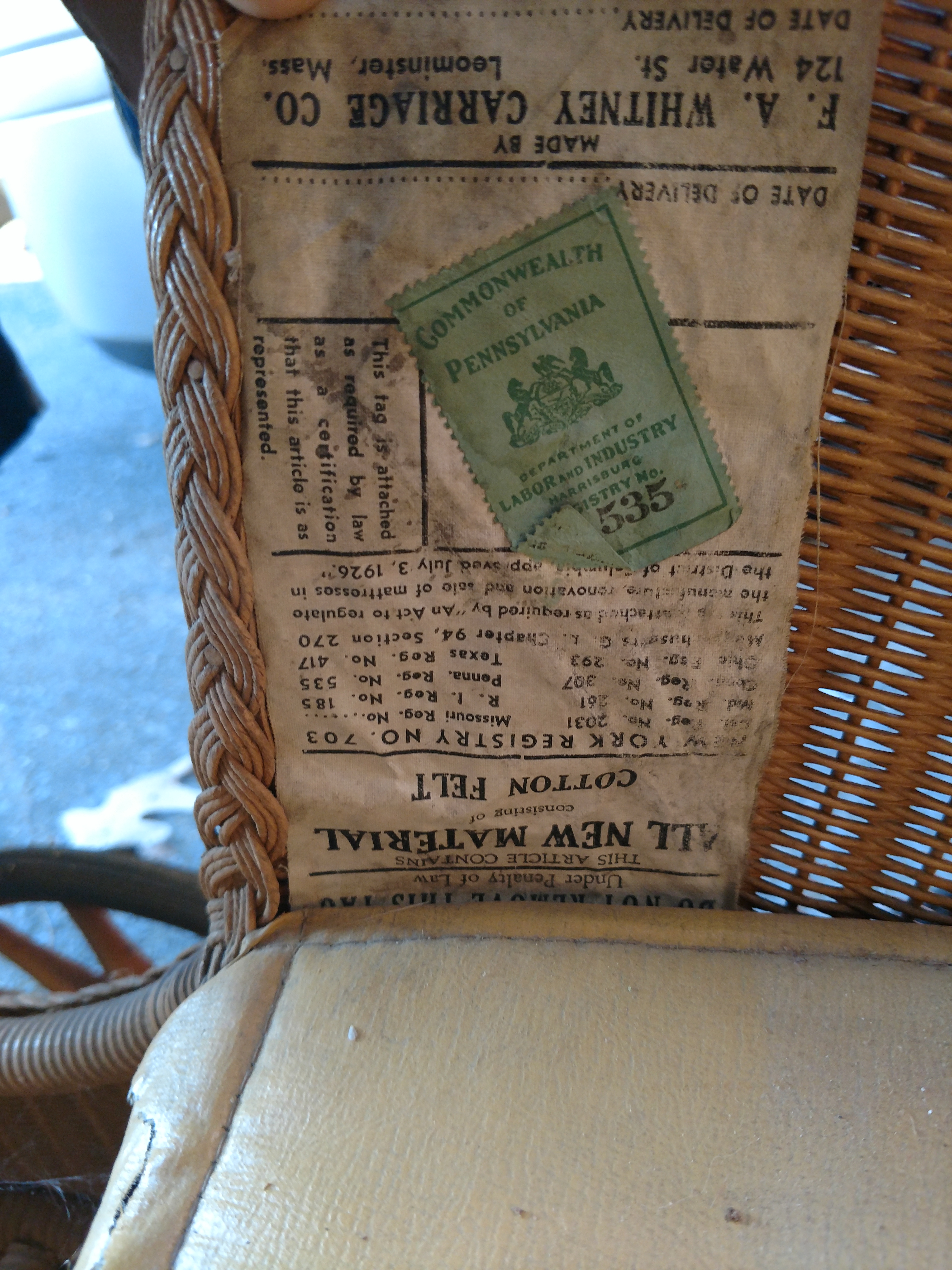 Baby carriage or stroller made by FA Whitney Carriage Co. See pictures for label info.