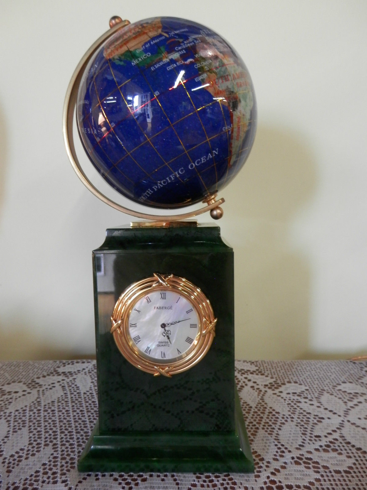 Mother of Pearl Dial, Siberian Russian Nephrite, Globe made of semi-precious stones.