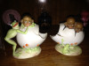 Colored fabric print of three black children ,one standing with a banjoand the other two, one a boy driving and the other a girl riding in a corn cob car with watermelon slice wheels. Sunflowers in the foreground next to child that is standing and a field of corn and the trees in the background.