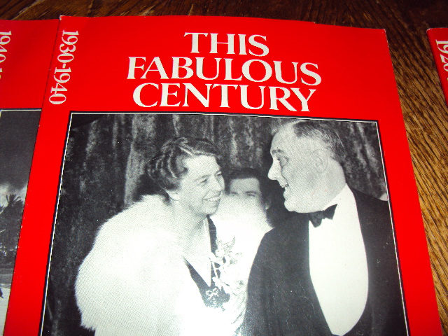 Time Life Magazines Collection "THIS FABULOUS CENTURY" dating from 1920- 1970. Each magizine is in EXCELLENT condition. The first one is dated 1920-1930 featuring Babe Ruth on the front cover; Second magazxine features 1930-1940 FDR and ELEANOR Roosevelt; Third magazine  1940-1950 features the Pearl Harbor Attack; Fourth magazine features 1950 1960 Elvis Presley; Fifthe magazine 1960 1070 features President JFKennedy. There s only one magazine missing which dates 170- 1980. The case that  holds these five magazines is in good condition also.