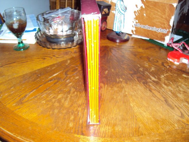 Medium the magazines are made of res paper and the case is a study burgundy and gold trimmed box with the wording TIME THIS FABULOUS CENTURY on the front.