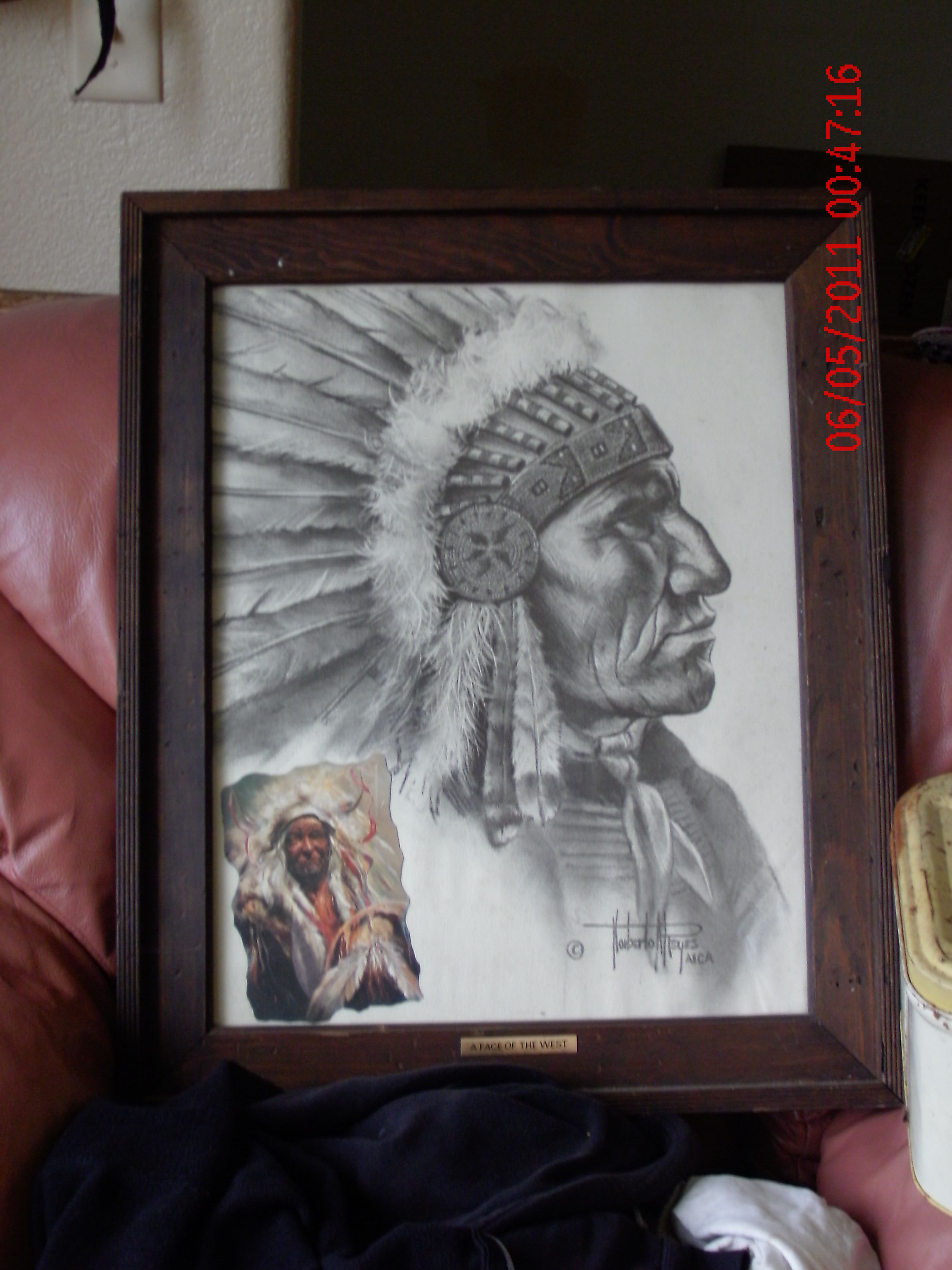 In a wood frame titled " A Face of The West". Looks like it may be on some kind of relif type paper.Has a C with a circule around it has Norberto A. Reyes AICA. for the signiture. I t might be a print but I'm not for sure. The image that is on this picture is a picture of an Indian Chief wit a head dress on. I have seen simulaure pictures of this image but none that say it's from the face of the west seires. or Nprberto reyes AICA. I f I need to send a piture wit it closer up, then I will send it right to you