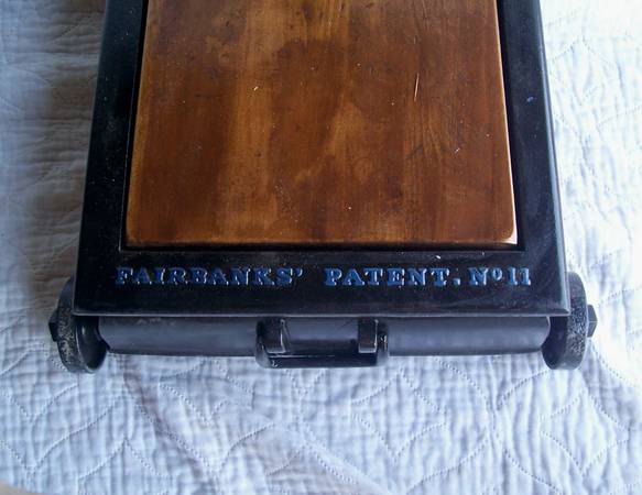 Before it was restored it was in the main lobby of a Marie Calendars Restaurant and had empty fruit boxes on it for display. A friend restored this item to be displayed and admired from a age long ago. The color is reproduced from old photo's and what paint was left on the scale. It has 2 coats of polyurethane