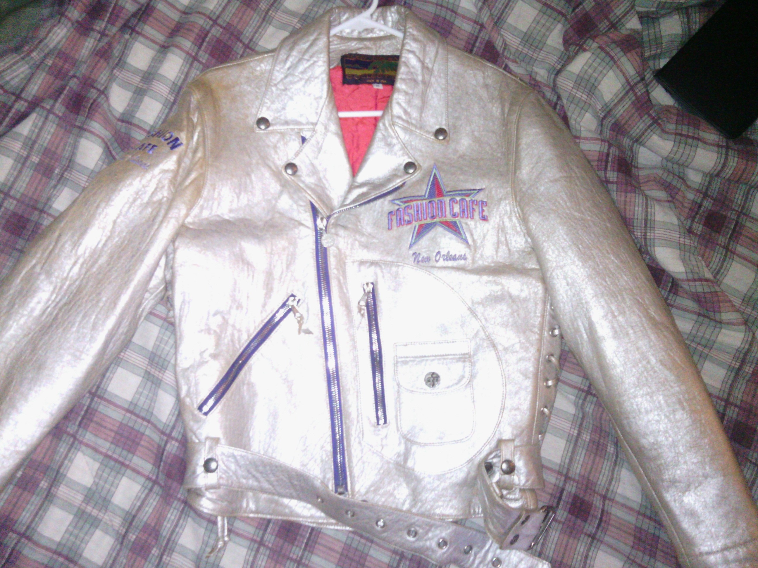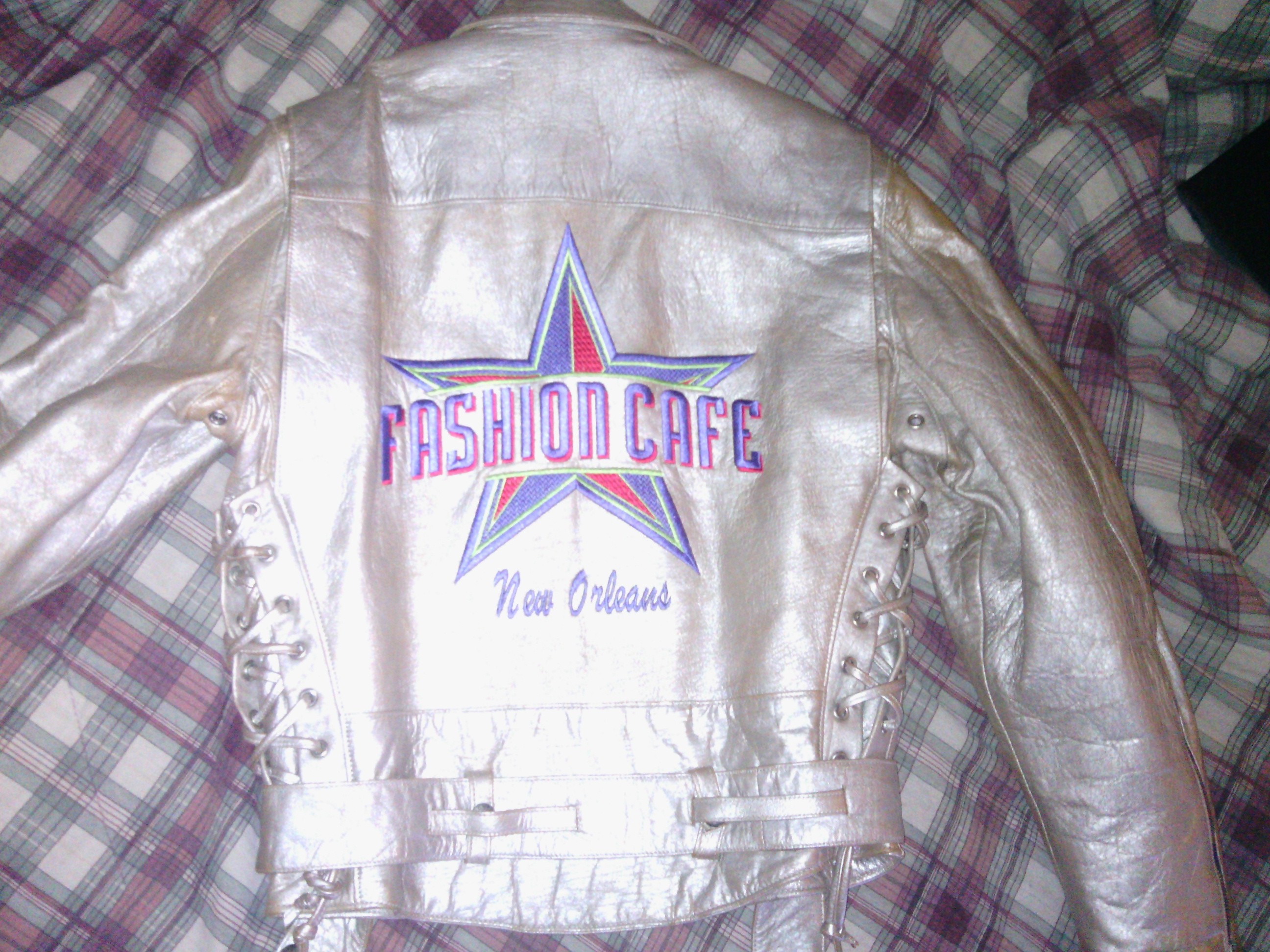 I have a silver leather Fashion Cafe jacket from New Orleans. It is labeled with Tony Nowak. Size Meduim. Liner and seams are all in excellent shape. Exterior is distressed and has one very small tear in the elbow approximately 1/8 inch in length. All zippers are clean and functional. I know very little about this designer and the Fashion Cafe. It has either been worn and well taken care of or the distressed texture is intentional by design and perhaps has been worn little if at all. It was purchased at a charity auction in Tulsa, Oklahoma in spring of 2015.