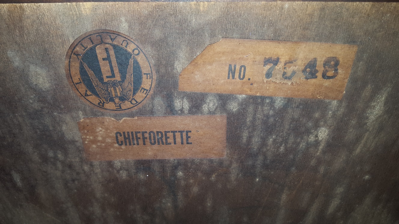 I have a Federal Quality Chifforette.  It is No. 7548.  It has some wear and tear as the owner before child put stickers on the inside.  All the drawers work and It's still a great piece.  I was hoping to get an idea on the value of it because I am looking to sell it.  Also, I wanted to know if I should fix it up or leave it as is.  Looking for any kind of direction.  Thanks!